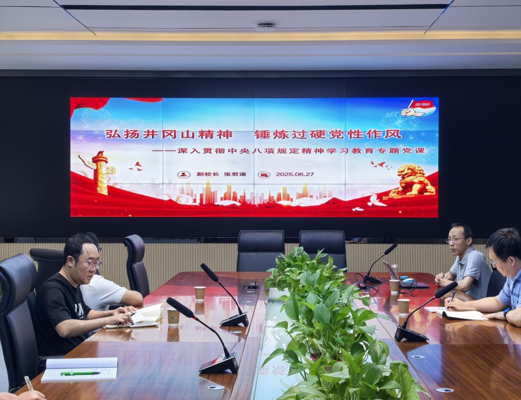 為深入貫徹落實(shí)中央八項(xiàng)規(guī)定精神,2025年6月27日上午,副校長張君濤以“弘揚(yáng)井岡山精神,錘煉過硬黨性作風(fēng)”為主題,在鄠邑校區(qū)博覽樓116室為教務(wù)處黨支部全體黨員講授專題黨課。