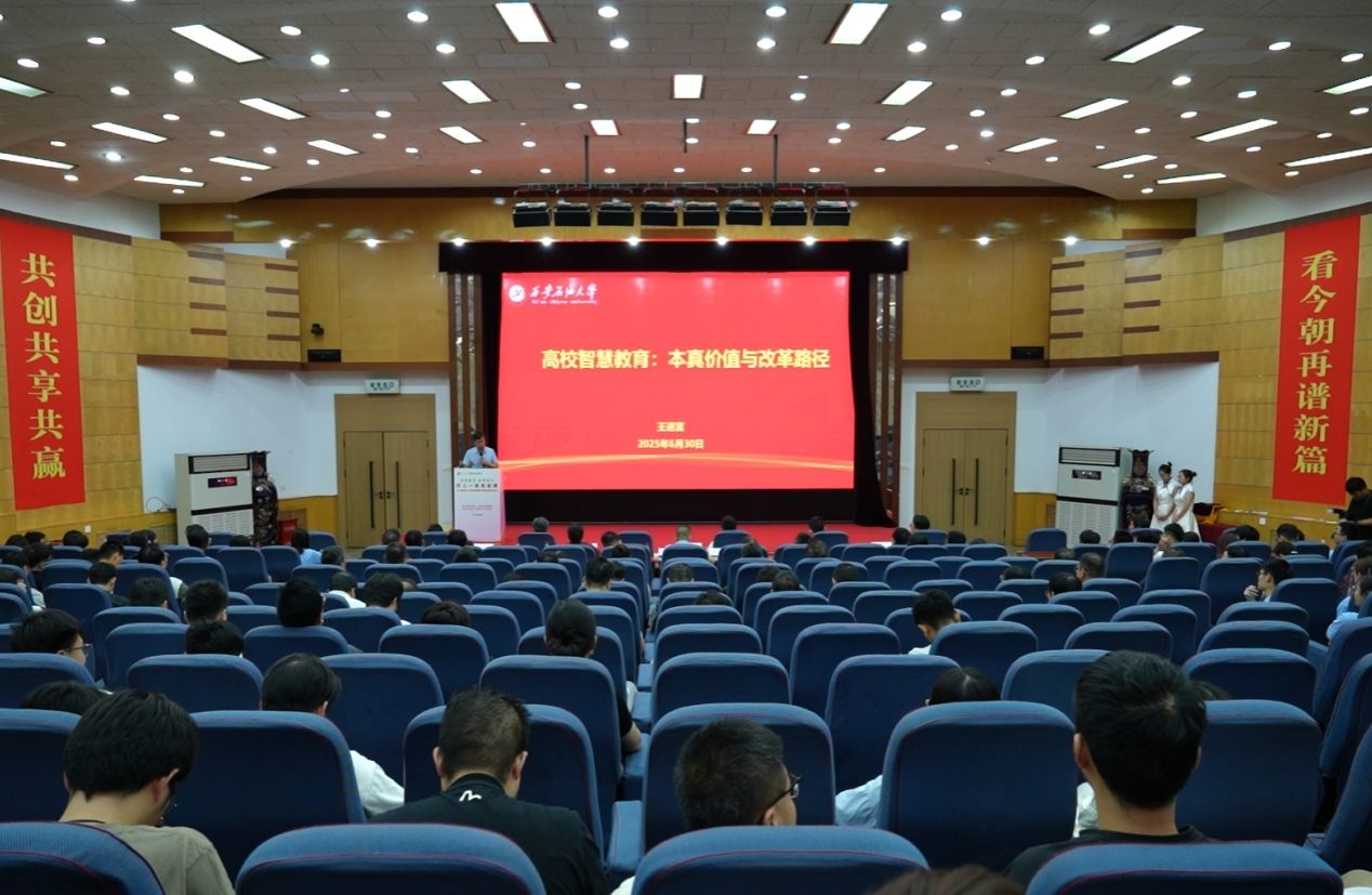 專(zhuān)題黨課強(qiáng)作風(fēng),智慧賦能育新人。在專(zhuān)題黨課環(huán)節(jié),王進(jìn)富以《鍥而不舍落實(shí)中央八項(xiàng)規(guī)定精神 推進(jìn)作風(fēng)建設(shè)常態(tài)化長(zhǎng)效化》為題,系統(tǒng)闡述開(kāi)展學(xué)習(xí)教育的重大意義和中央八項(xiàng)規(guī)定精神的核心要義,深入剖析作風(fēng)建設(shè)的新形勢(shì)新要求,強(qiáng)調(diào)以高度的政治自覺(jué)和行動(dòng)自覺(jué)推進(jìn)作風(fēng)建設(shè),切實(shí)把紀(jì)律要求轉(zhuǎn)化為日常習(xí)慣,持續(xù)營(yíng)造風(fēng)清氣正的校園政治生態(tài)。在講授思政課時(shí),王進(jìn)富以《高校智慧教育:本真價(jià)值與改革路徑》為題,從“怎么想、怎么看、怎么干”三個(gè)層面展開(kāi)深入闡釋?zhuān)瑸閹熒鷰?lái)了一場(chǎng)深刻的思想啟迪。他強(qiáng)調(diào),智慧是教育的永恒追求,智慧教育為實(shí)現(xiàn)這一追求創(chuàng)造條件,是回歸教育本真的關(guān)鍵。當(dāng)前高等教育面臨深度轉(zhuǎn)型,地學(xué)發(fā)展尤為重要,智慧教育成為全球共識(shí)且已具備實(shí)施基礎(chǔ),教育主體亟需主動(dòng)變革。要堅(jiān)定數(shù)智賦能,通過(guò)重塑智慧辦學(xué)新理念、構(gòu)建智慧辦學(xué)新體系、構(gòu)建智慧辦學(xué)新校園、升級(jí)智慧教育新環(huán)境、構(gòu)建智慧教育新范式、促進(jìn)智慧管理新體系,建設(shè)以學(xué)生為中心、以教師為根基、有感情有溫度的智慧西石大,不負(fù)智能時(shí)代與育人使命。