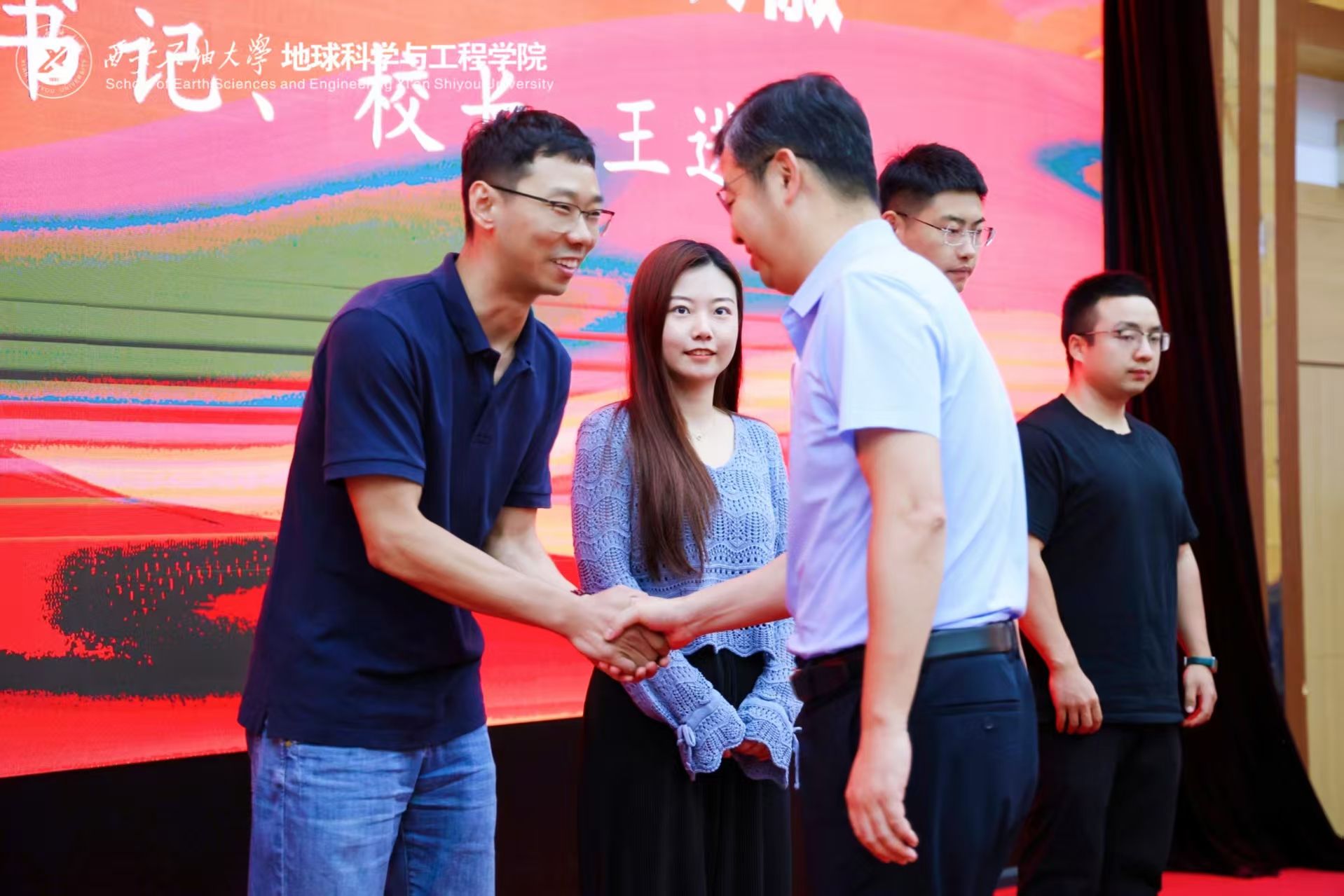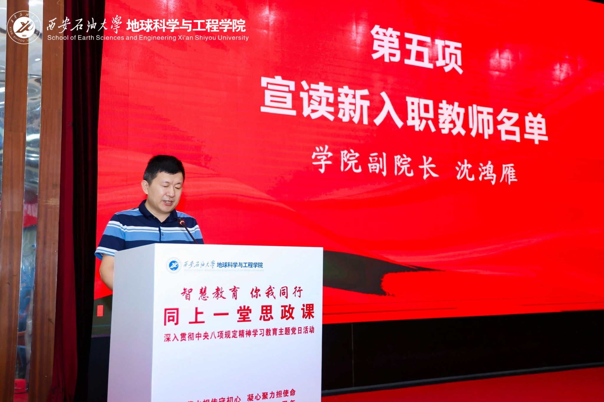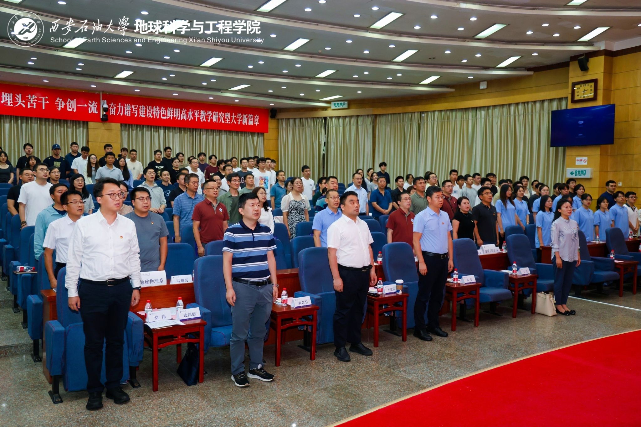 在慶祝中國(guó)共產(chǎn)黨成立104周年,深入貫徹中央八項(xiàng)規(guī)定精神學(xué)習(xí)教育走深走實(shí)和貫徹落實(shí)學(xué)校“三個(gè)年”建設(shè)部署之際,6月30日下午,地球科學(xué)與工程學(xué)院黨委在雁塔校區(qū)學(xué)術(shù)報(bào)告廳舉行“智慧教育 你我同行”同上一堂思政課暨深入貫徹中央八項(xiàng)規(guī)定精神學(xué)習(xí)教育主題黨日活動(dòng)。校黨委副書(shū)記、校長(zhǎng)王進(jìn)富出席活動(dòng)并講授思政課暨學(xué)習(xí)教育專(zhuān)題黨課。學(xué)院黨政領(lǐng)導(dǎo)班子成員,黨委委員、理論學(xué)習(xí)中心組成員,各系黨支部書(shū)記、主任,師生員工及黨員代表等200余人參加。活動(dòng)由學(xué)院黨委書(shū)記高黎主持。