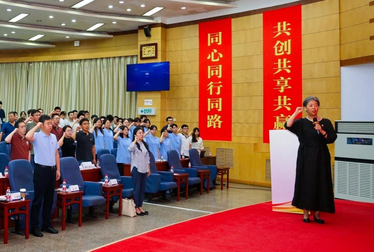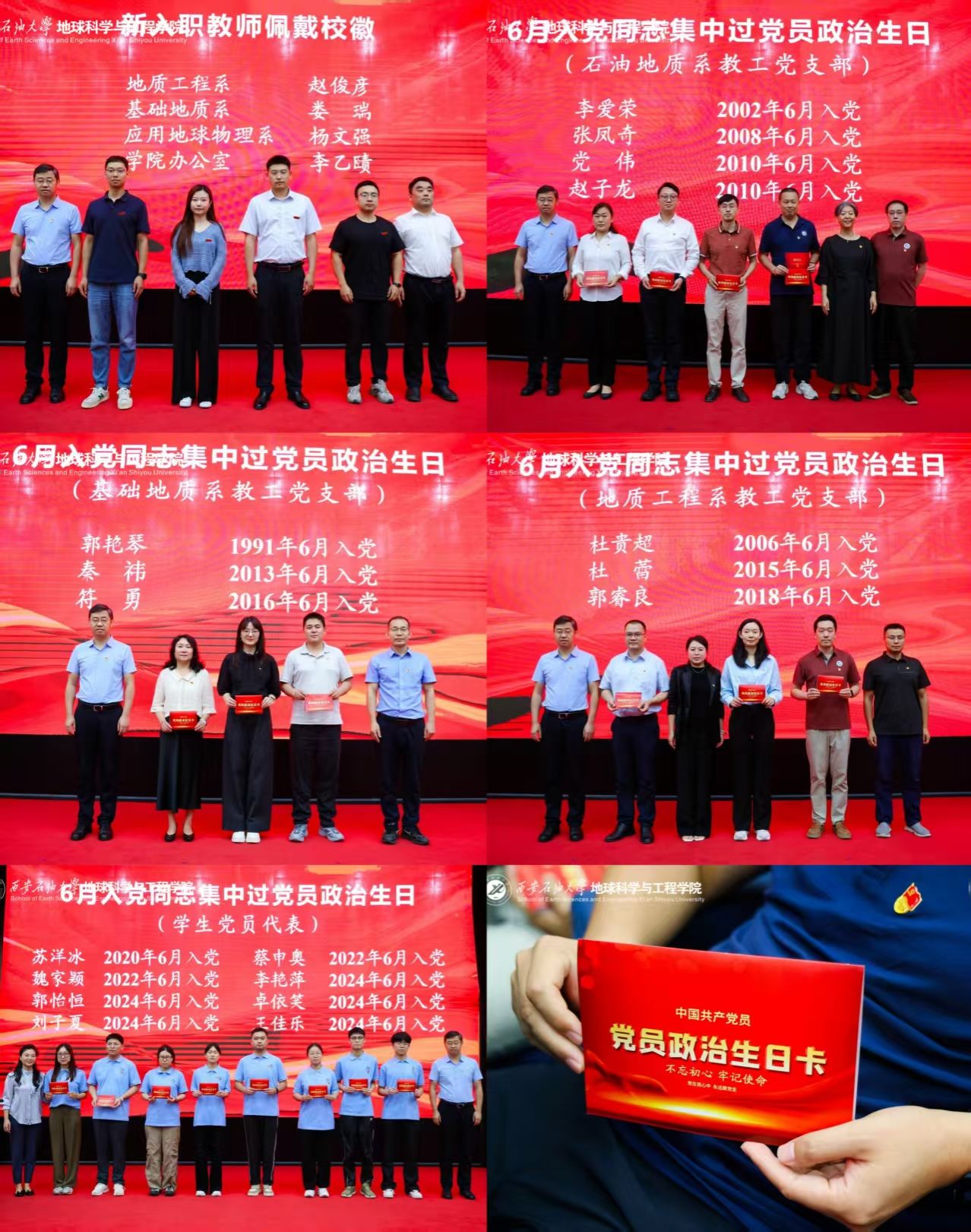 學(xué)院副院長(zhǎng)沈鴻雁宣讀學(xué)院新入職教師名單。學(xué)院院長(zhǎng)宋立軍等與會(huì)領(lǐng)導(dǎo)為新進(jìn)教師佩戴?;?,象征教育薪火相傳。在集中過(guò)政治生日環(huán)節(jié),校院領(lǐng)導(dǎo)與各系黨支部書(shū)記、主任為6月入黨的師生黨員代表頒發(fā)黨員政治生日卡,進(jìn)一步強(qiáng)化身份認(rèn)同,激發(fā)使命擔(dān)當(dāng)。