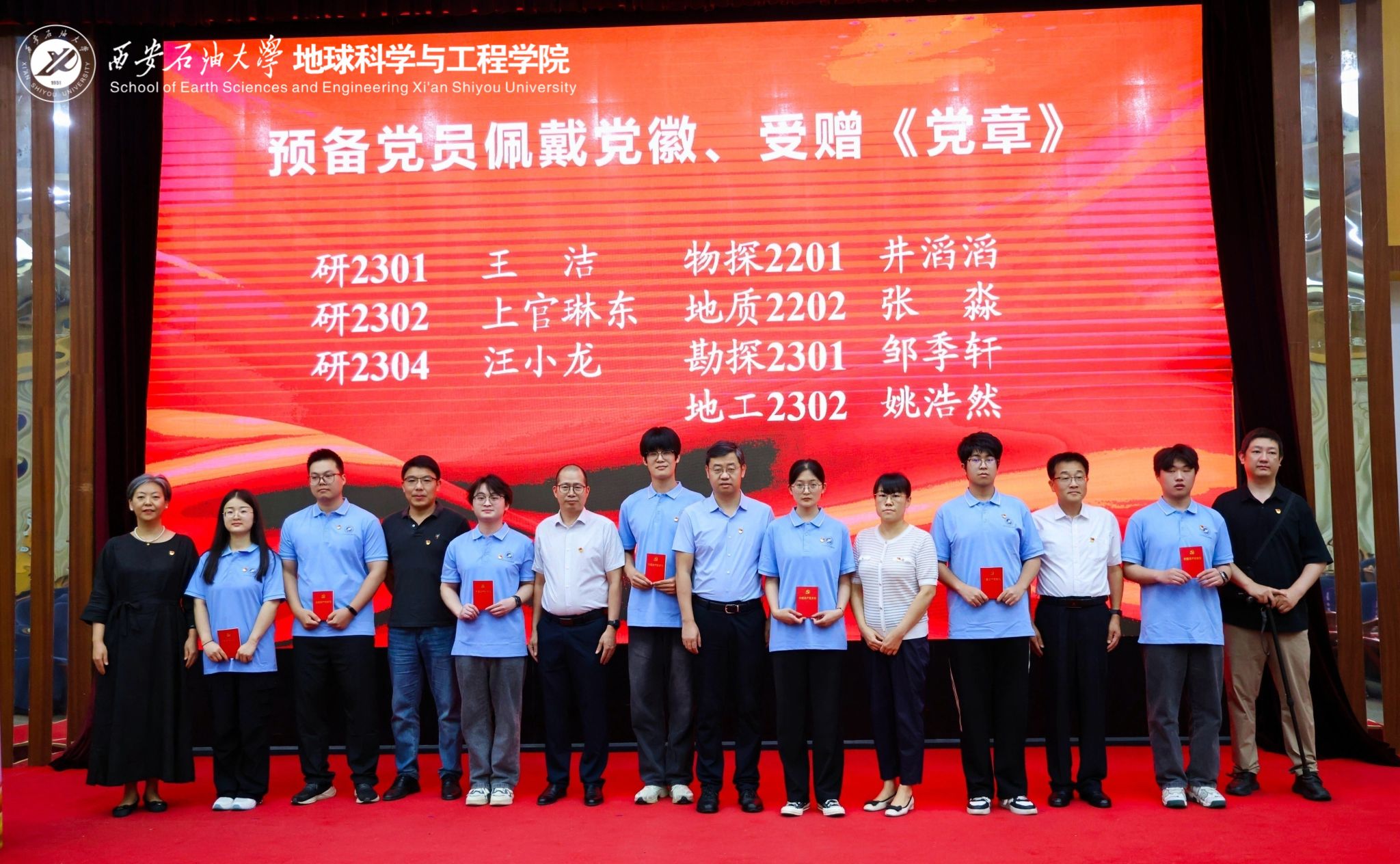 莊嚴(yán)儀式強(qiáng)信念,初心如磐擔(dān)使命。學(xué)院黨委副書(shū)記王瑩宣讀預(yù)備黨員名單。在高黎同志的領(lǐng)誓下,新黨員面向黨旗莊嚴(yán)宣誓,老黨員重溫入黨誓詞。鏗鏘誓言響徹會(huì)場(chǎng),表達(dá)了學(xué)院黨員的赤誠(chéng)信念。會(huì)場(chǎng)非黨員師生共同肅立,觀禮見(jiàn)證。王進(jìn)富同志同學(xué)院各黨支部在教學(xué)科研和管理服務(wù)一線工作多年、黨齡較長(zhǎng)的黨員代表,為預(yù)備黨員代表佩戴黨徽并贈(zèng)送黨章,激勵(lì)他們牢記黨員身份,踐行初心使命。