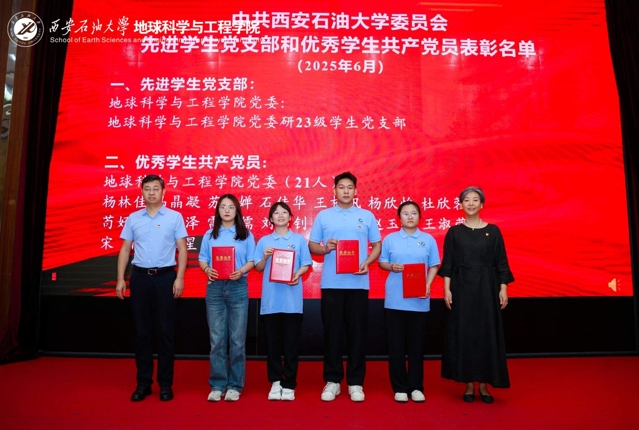 表彰先進(jìn)樹(shù)典型,砥礪奮進(jìn)再出發(fā)。學(xué)院副院長(zhǎng)黨偉宣讀2025年先進(jìn)學(xué)生黨支部和優(yōu)秀學(xué)生共產(chǎn)黨員表彰名單。校院領(lǐng)導(dǎo)為獲獎(jiǎng)代表頒發(fā)榮譽(yù)證書(shū),勉勵(lì)受表彰的集體和個(gè)人珍惜榮譽(yù),再接再厲,爭(zhēng)當(dāng)先鋒、爭(zhēng)做表率。