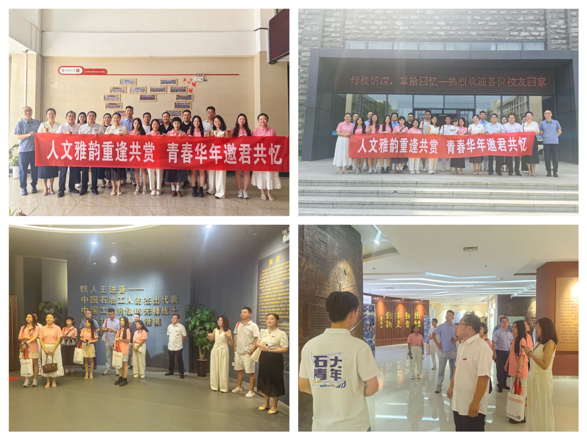 參觀鄠邑校區(qū)及兩館。下午14:00,在學(xué)院領(lǐng)導(dǎo)班子和老師的陪同下,校友們參觀了鐵人紀(jì)念館和校史館。在鐵人館內(nèi),校友們通過珍貴影像與實(shí)物老照片,重溫“鐵人精神”的深刻內(nèi)涵。校史館中,一幅幅老照片、一件件歷史文物,訴說著學(xué)校七十多年來的奮斗歷程,也讓校友們回到了那段曾經(jīng)在西安石油大學(xué)“刻苦奮斗、追求卓越”的歲月。參觀結(jié)束后,校友們分別在圖書館前和崇文樓一樓畢業(yè)生照片墻前合影留念。諸多校友在照片墻前駐足良久,找尋并分享自己的那段青春足跡。