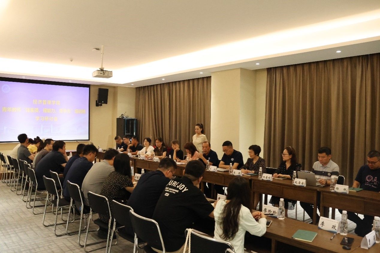 24日晚,培訓(xùn)班舉交流研討會,圍繞學(xué)院高質(zhì)量發(fā)展規(guī)劃、本科教學(xué)、科研與研究生工作、國家課題申報等主題展開深度研討。研討會由學(xué)院黨委書記談建勤主持。學(xué)院院長吳勛介紹了學(xué)院高質(zhì)量發(fā)展規(guī)劃,副院長董春詩介紹了學(xué)院本科教學(xué)的相關(guān)情況,副院長李春霄介紹了學(xué)院科研與研究生工作的相關(guān)情況,王君萍、吳文潔、梁芳、楊惠賢、楊睿娟等教授結(jié)合自身成長經(jīng)歷分享了教學(xué)科研的經(jīng)驗與思考,趙需要和尹詩晨兩位老師分享了在國家基金申報中的經(jīng)驗和心得。研討會現(xiàn)場氣氛熱烈,始終涌動著求知若渴的熱浪和思想碰撞的激流,原定22點結(jié)束的議程一再延后到23點30分。青年教師們紛紛表示老師們的經(jīng)驗分享就像一把火,把白天在現(xiàn)場教學(xué)中積蓄的感動、震撼與思考徹底點燃,化作可觸摸、可落地、可共享的行動清單,作為青年教師將在人才培養(yǎng)、科學(xué)研究、服務(wù)社會中不斷展現(xiàn)自我、實現(xiàn)突破,為學(xué)校和學(xué)院的高質(zhì)量發(fā)展貢獻更大力量。