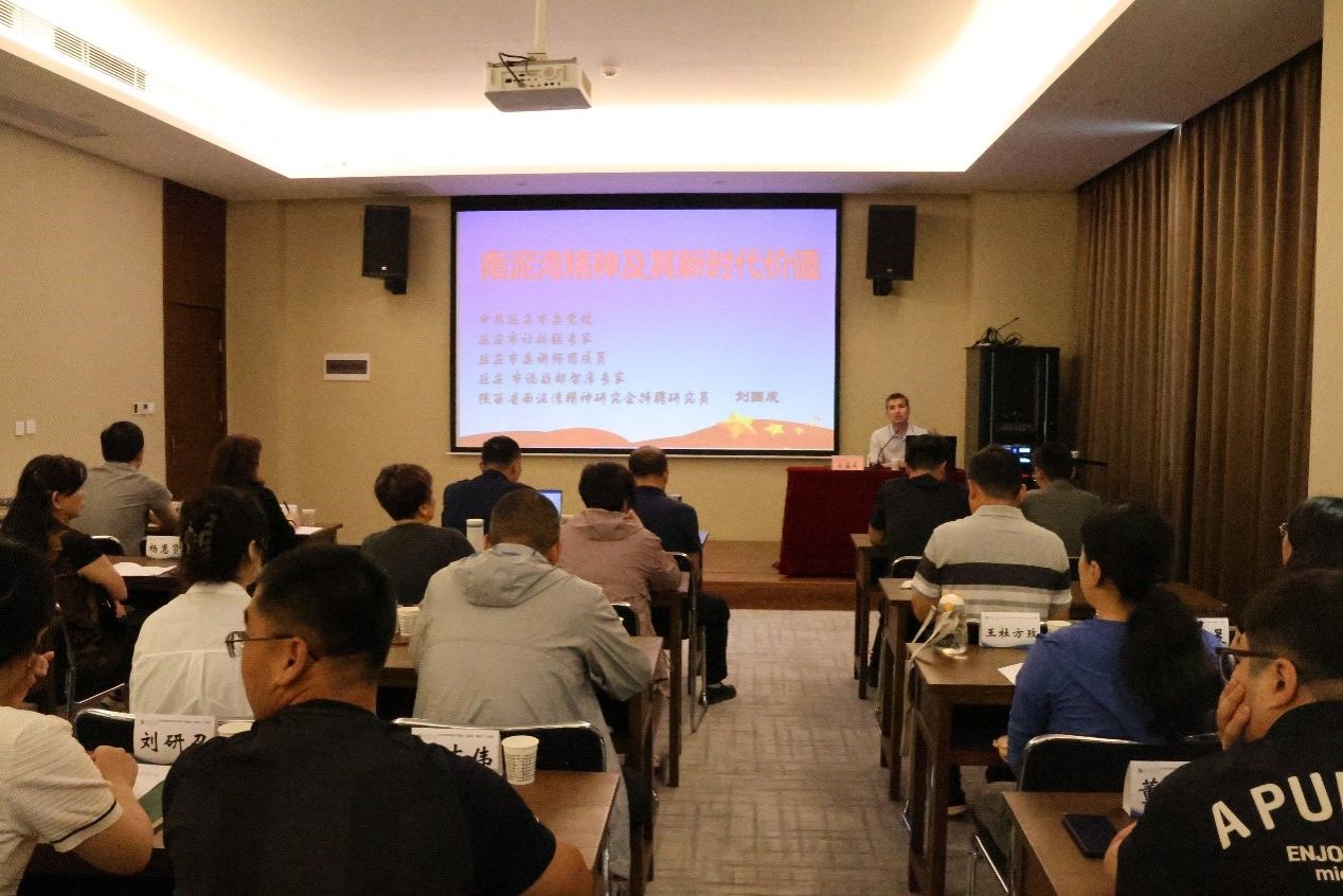 25日上午,培訓(xùn)班邀請延安市委黨校劉國成教授作題為《南泥灣精神及其新時代價值》的專題講座。劉國成從南泥灣精神的形成條件、歷史過程、主要內(nèi)容和時代價值等方面,系統(tǒng)闡述了南泥灣精神中的自力更生、艱苦奮斗的革命精神,團結(jié)一致、迎難而上的斗爭精神,爭當(dāng)模范、頑強拼搏的進取精神,敢于突破、勇于創(chuàng)造的創(chuàng)新精神。他指出,南泥灣精神永遠(yuǎn)不會過時,繼承和發(fā)揚南泥灣精神,必將激勵我們?yōu)闉槊褡鍙?fù)興、社會和諧、人民幸福而不懈努力。