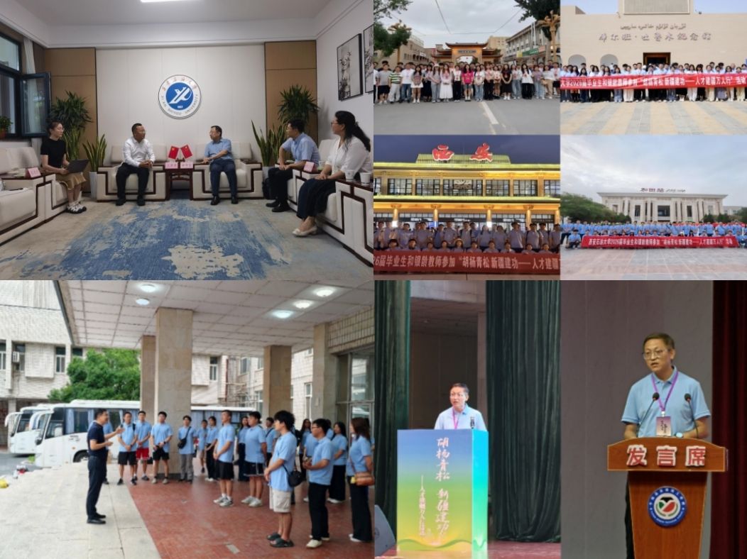 8月4日至14日,我校受邀參加新疆自治區(qū)“胡楊青松 新疆建功——人才建疆萬人行”第二期活動(dòng)。就業(yè)創(chuàng)業(yè)指導(dǎo)中心、離退休工作處及各院(系)組織40余名師生走進(jìn)和田地區(qū)、烏魯木齊市的重點(diǎn)產(chǎn)業(yè)園區(qū)、企業(yè)、學(xué)校、博物館、社區(qū),通過實(shí)地參觀、座談交流等,深入開展就業(yè)研學(xué),精準(zhǔn)對(duì)接人才需求,拓寬就業(yè)渠道。活動(dòng)前期,副校長(zhǎng)種宇宏與新疆人才創(chuàng)新科技有限公司副總經(jīng)理王彥斐一行在雁塔校區(qū)行政樓會(huì)客廳座談交流。雙方就進(jìn)一步加強(qiáng)校地交流,深化產(chǎn)學(xué)研合作達(dá)成共識(shí)。就業(yè)創(chuàng)業(yè)指導(dǎo)中心主任王亮為參與師生舉行出征儀式并發(fā)放“愛心禮包”。就業(yè)創(chuàng)業(yè)指導(dǎo)中心副主任楊生強(qiáng)代表此行5所學(xué)校在和田地委黨校舉行的“胡楊青松 新疆建功——人才建疆萬人行”活動(dòng)啟動(dòng)儀式上發(fā)言。