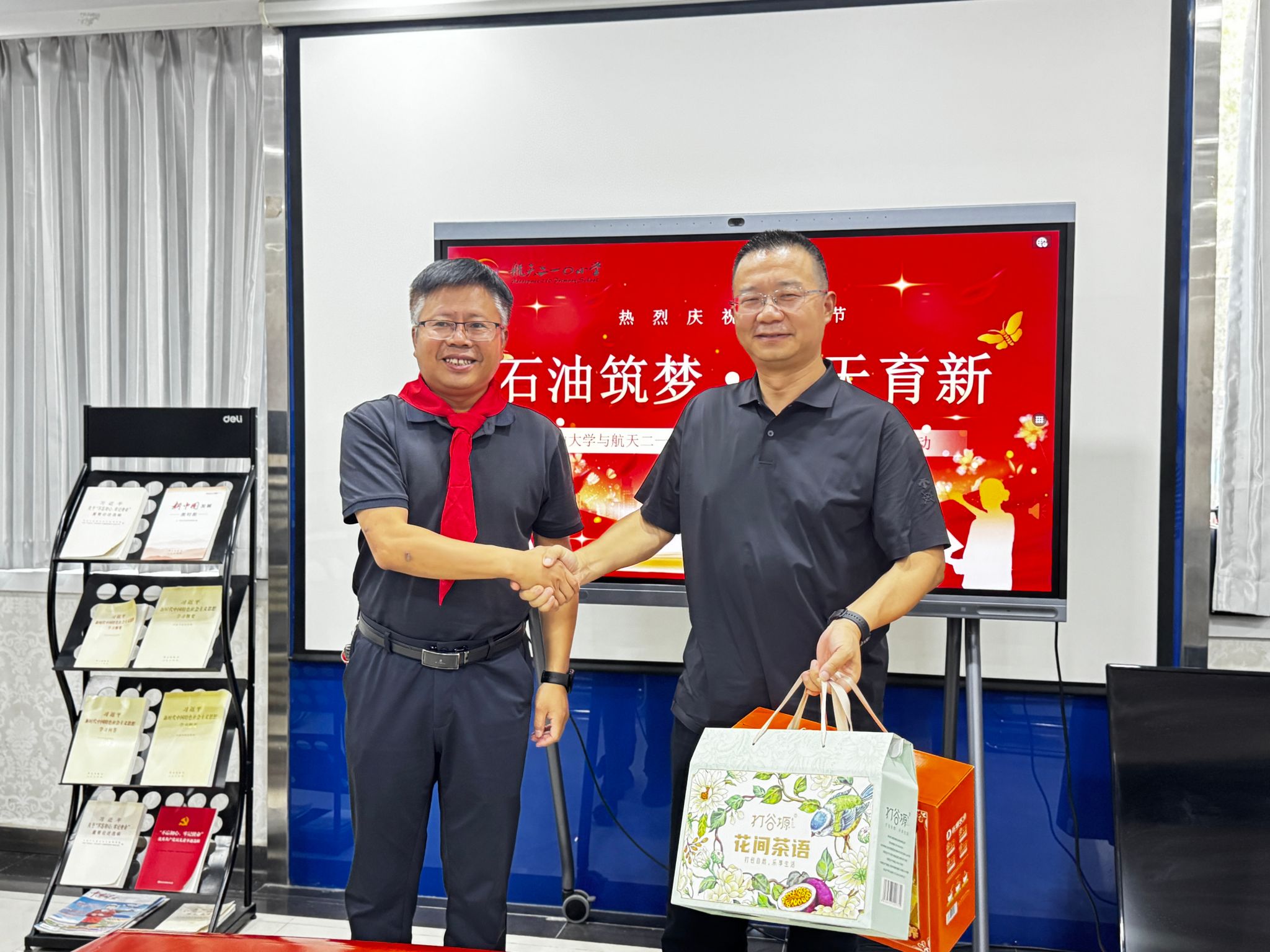 98日下午,副校長張驍勇帶隊前往航天210小學(xué)參加“石油筑夢 航天育新”教師節(jié)慶?;顒?,校工會陪同走訪。航天210小學(xué)校長李寧,副校長劉雅鋒、段娣娜、翟毅博及部分教師代表參加了本次活動。