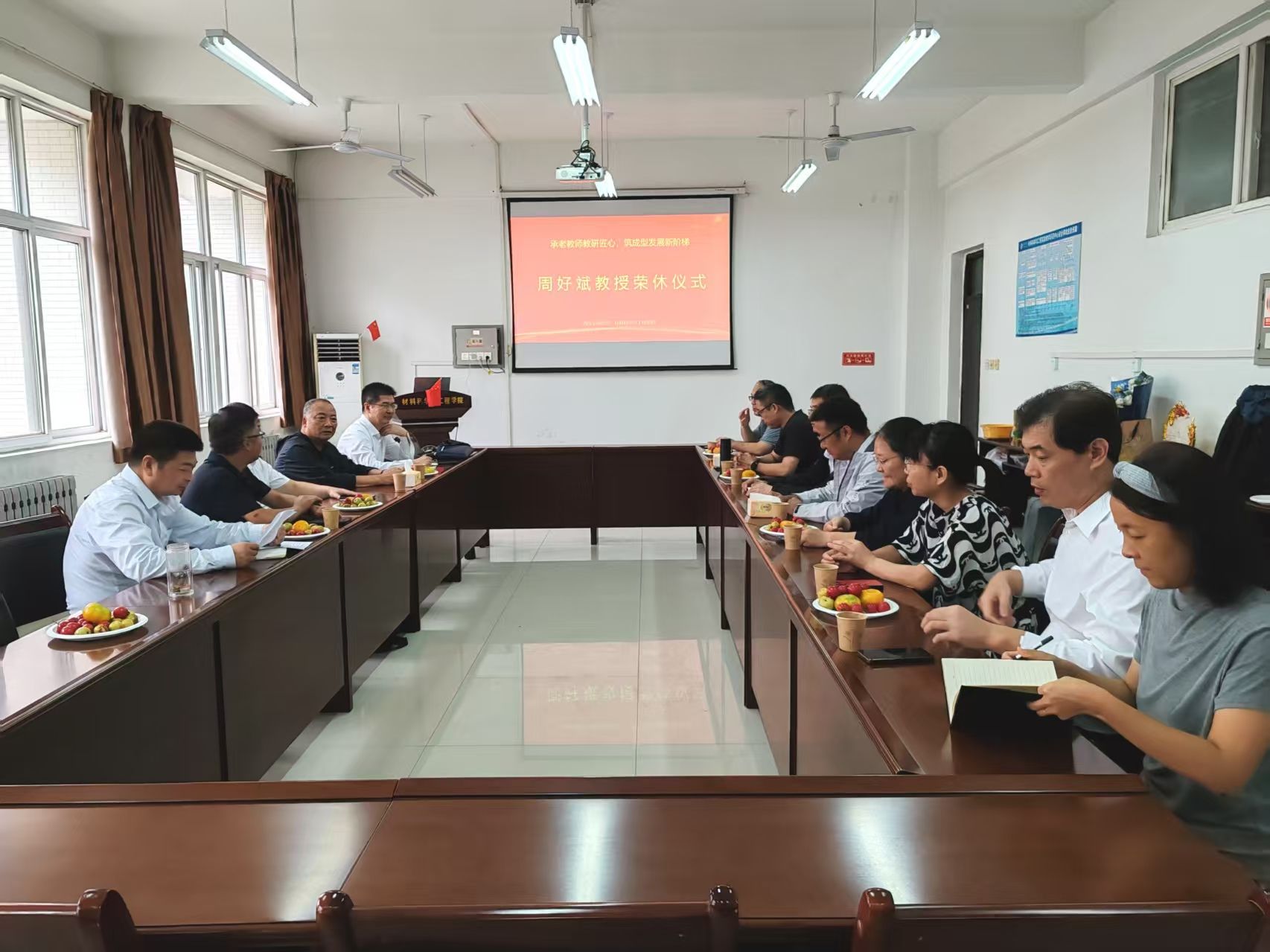 9月10日上午,在第41個(gè)教師節(jié)之際,材料科學(xué)與工程學(xué)院在鄠邑校區(qū)天工樓204會(huì)議室為2025年退休的周好斌教授舉行了隆重而溫馨的教職工榮休儀式。儀式由學(xué)院黨委書記耿嶺主持,副校長張驍勇教授、學(xué)院領(lǐng)導(dǎo)班子成員、各教研室主任和教師代表參加了儀式。