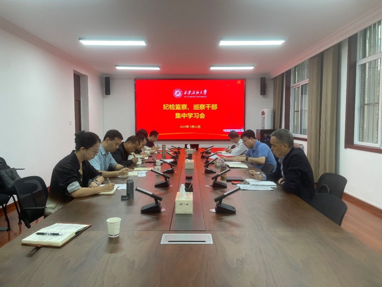 9月11日上午,紀檢巡察干部2025年第15次集中學習會在鄠邑校區(qū)辦公樓101會議室召開,紀檢監(jiān)察機構(gòu)、黨委巡察工作辦公室全體干部參加。會議由校黨委副書記、紀委書記、監(jiān)察專員王輝強主持。