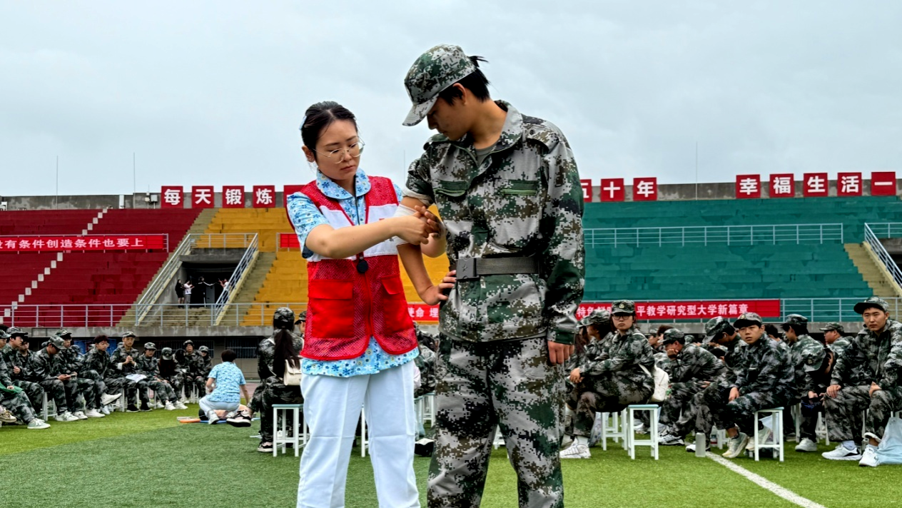 在9月13日第26個“世界急救日”(今年主題為“急救與氣候變化”)到來之際,為助力2025級新生平穩(wěn)適應(yīng)大學(xué)環(huán)境,系統(tǒng)提升其健康防護意識與突發(fā)事件應(yīng)對能力,9月12日,學(xué)校武裝部、校醫(yī)院攜手鄠邑區(qū)紅十字會、鄠邑區(qū)疾病預(yù)防控制中心,在鄠邑校區(qū)東操場聯(lián)合開展應(yīng)急救護培訓(xùn)、傳染病防治講座及醫(yī)保政策科普系列活動。作為新生入學(xué)教育的“關(guān)鍵第一課”,活動緊密對標(biāo)學(xué)?!叭珖谌本冉逃圏c學(xué)?!苯ㄔO(shè)目標(biāo),深度踐行“人人學(xué)急救,急救為人人”的理念,結(jié)合“急救與氣候變化”主題,著力構(gòu)建系統(tǒng)化、多維度的校園健康保障機制。
