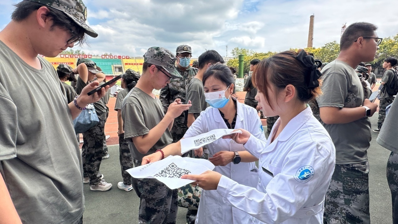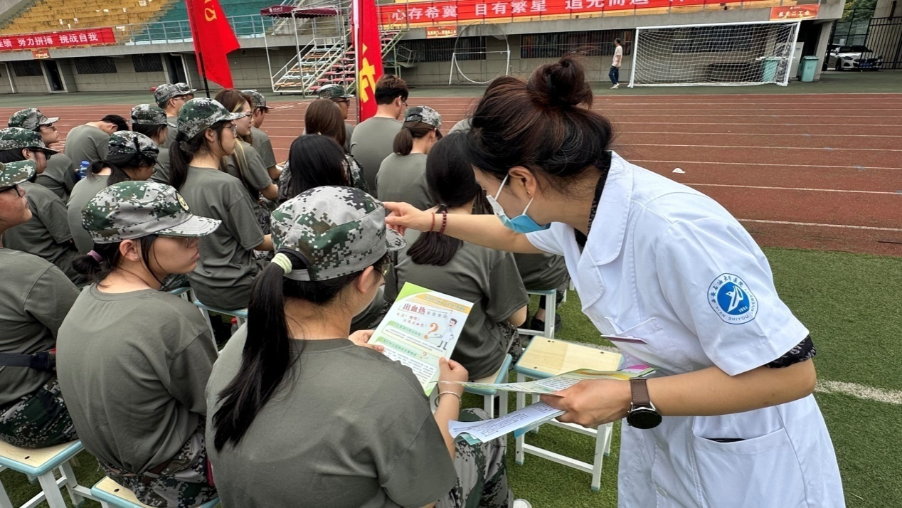 多維度服務(wù),深化宣教實效:洪艷萍帶領(lǐng)醫(yī)務(wù)人員現(xiàn)場發(fā)放包含肺結(jié)核、腎綜合征出血熱、基孔肯雅熱防控內(nèi)容的傳染病防治宣傳手冊,通過“集中講座+一對一答疑”的方式,精準(zhǔn)化解新生健康知識盲區(qū);同時結(jié)合上午急救演練內(nèi)容,指導(dǎo)新生在傳染病(含肺結(jié)核、腎綜合征出血熱、基孔肯雅熱等傳染?。┩话l(fā)時的應(yīng)急處置要點,強化“預(yù)防為先、科學(xué)應(yīng)對”的健康理念。現(xiàn)場還組織新生完成艾滋病知曉率調(diào)查問卷,全面掌握新生健康知識儲備情況,為后續(xù)開展精準(zhǔn)化健康宣教提供數(shù)據(jù)支撐。