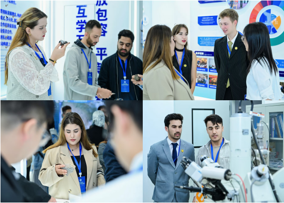 參觀學(xué)習(xí)環(huán)節(jié),師生們沉浸式參觀中心展廳與實驗室,從地學(xué)領(lǐng)域國際合作成果展板到各類地質(zhì)標(biāo)本實物,深入了解上合組織成員國在地質(zhì)調(diào)查、資源勘探、人才培養(yǎng)等領(lǐng)域的國際合作歷程與突破。大家仔細(xì)觀察電子探針、場發(fā)射掃描電鏡等高精度儀器,了解其在地質(zhì)樣本分析與地質(zhì)結(jié)構(gòu)研究中的原理與應(yīng)用。過程中,國際學(xué)生們結(jié)合專業(yè)所學(xué)積極提問,科研人員耐心解答,現(xiàn)場互動氛圍熱烈。