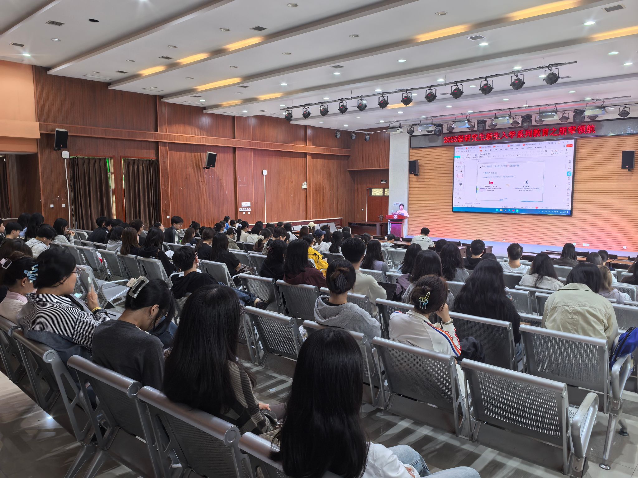 為幫助2025級研究生新生快速融入學術環(huán)境、明晰研途發(fā)展路徑,9月25日下午,由研究生工作部精心策劃的新生入學教育之朋輩領航交流分享會分別在雁塔校區(qū)第三會議室和鄠邑校區(qū)崇文樓118室舉行。本次活動特邀我校8位來自不同學科專業(yè)的優(yōu)秀碩博士研究生擔任“領航人”,圍繞學術科研、學業(yè)規(guī)劃、導學交流等新生關切話題展開深度分享。他們?yōu)檠芯可律钌狭艘粓黾婢呱疃扰c實用性的成長指南,2025 級研究生新生代表共計300余人參加交流會,現(xiàn)場氛圍熱烈。