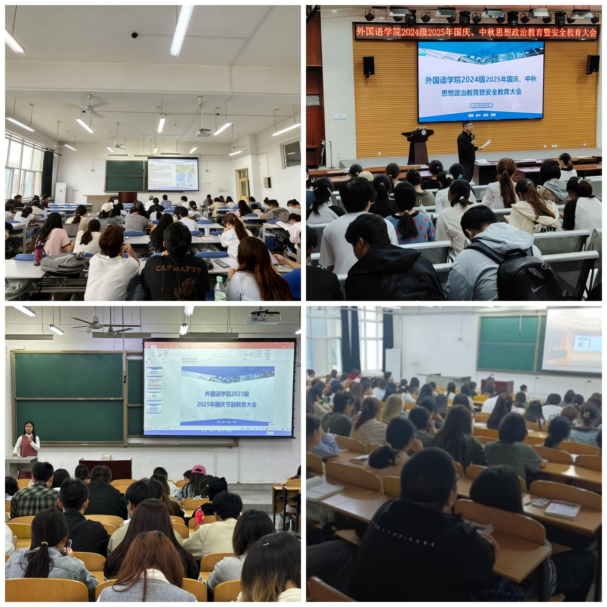 為切實做好重要時間節(jié)點的學生思想政治教育和安全穩(wěn)定工作,提高學生自我防范意識,鑄牢安全防線,根據(jù)學校相關(guān)要求,學院各年級于9月28日分別在鄠邑校區(qū)崇文樓118多功能廳、博覽樓A537、博思樓B112召開2025年國慶、中秋假期思想政治教育暨安全教育大會。大會由各年級輔導員主持,學院全體學生按年級參加大會。
