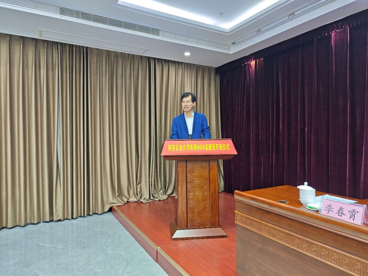 李春霄代表學(xué)院全體MBA授課老師,向加入西安石油大學(xué)經(jīng)濟(jì)管理學(xué)院大家庭的新同學(xué),表示最誠(chéng)摯的祝賀和最熱烈的歡迎。他希望同學(xué)們能將豐富的實(shí)踐經(jīng)驗(yàn)、獨(dú)特的人生閱歷進(jìn)一步升華,通過(guò)學(xué)習(xí)解決同學(xué)們真實(shí)的管理困惑,通過(guò)教學(xué)相長(zhǎng),碰撞出思想的火花。為此,全體教師將秉承“立德樹(shù)人、執(zhí)行合一”的理念,做好同學(xué)們求學(xué)路上的“引路人”與“同行者”。