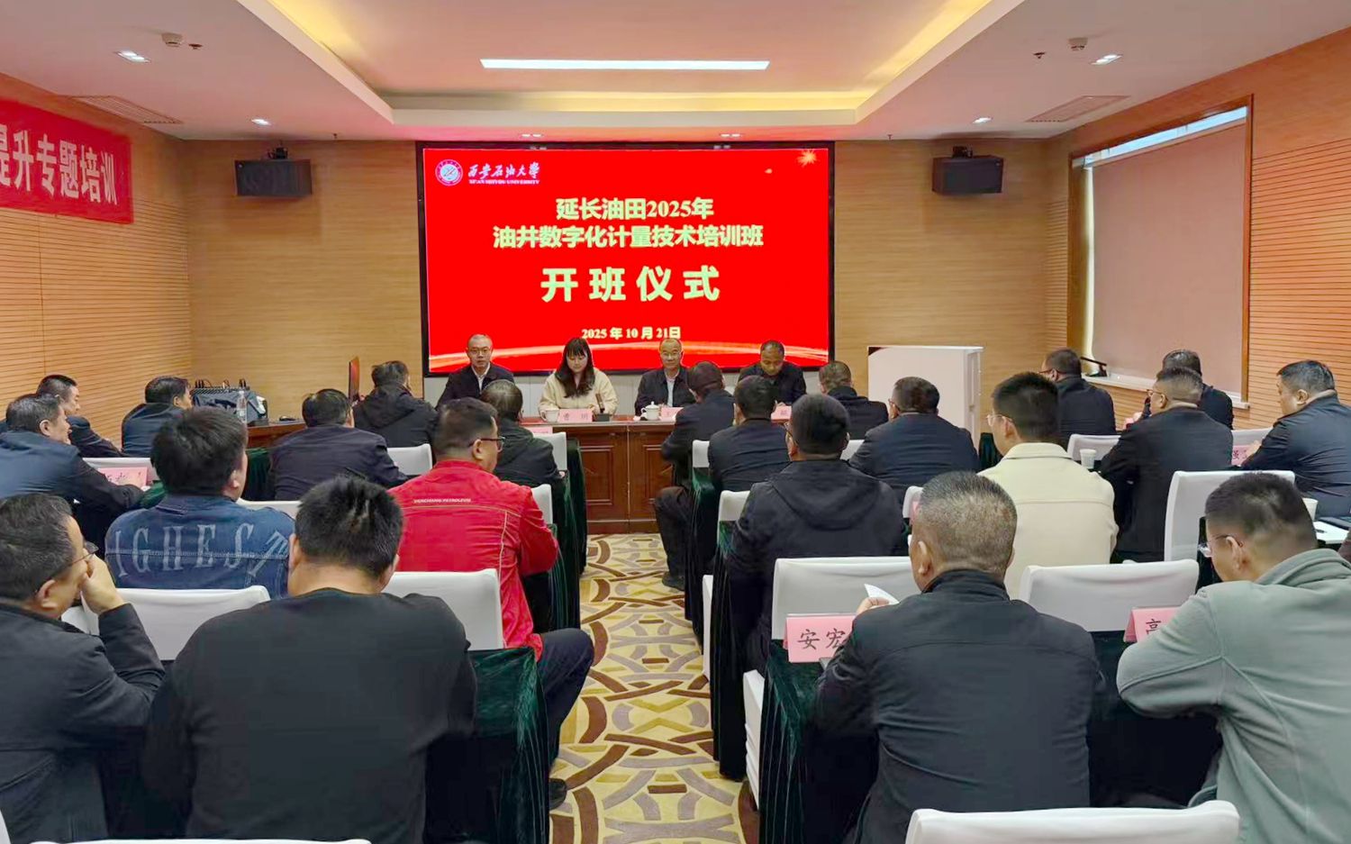 10月21日下午,由延長油田股份有限公司(以下簡稱“油田公司”)主辦、我校承辦的“2025年油井數(shù)字化計量技術(shù)培訓(xùn)班”在延安順利開班。油田公司各采油廠、各分公司作業(yè)區(qū)的生產(chǎn)業(yè)務(wù)骨干和技術(shù)計量人員參加培訓(xùn)。