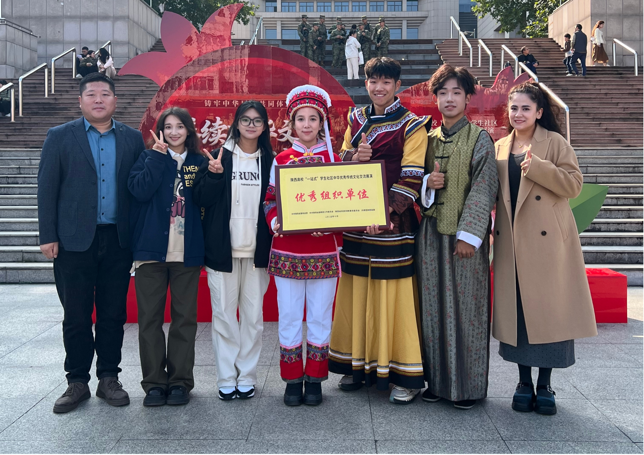 10月26日上午“鑄牢中華民族共同體意識——賡續(xù)中華文脈,鑄魂時代新人”2025年陜西高?!耙徽臼健睂W生社區(qū)中華優(yōu)秀傳統(tǒng)文化交流展演活動在西安交通大學圓滿落幕。我校黨委統(tǒng)戰(zhàn)部、學生工作部(處)工作人員及學生代表十余人共同參加活動,并榮獲“優(yōu)秀組織單位”稱號。