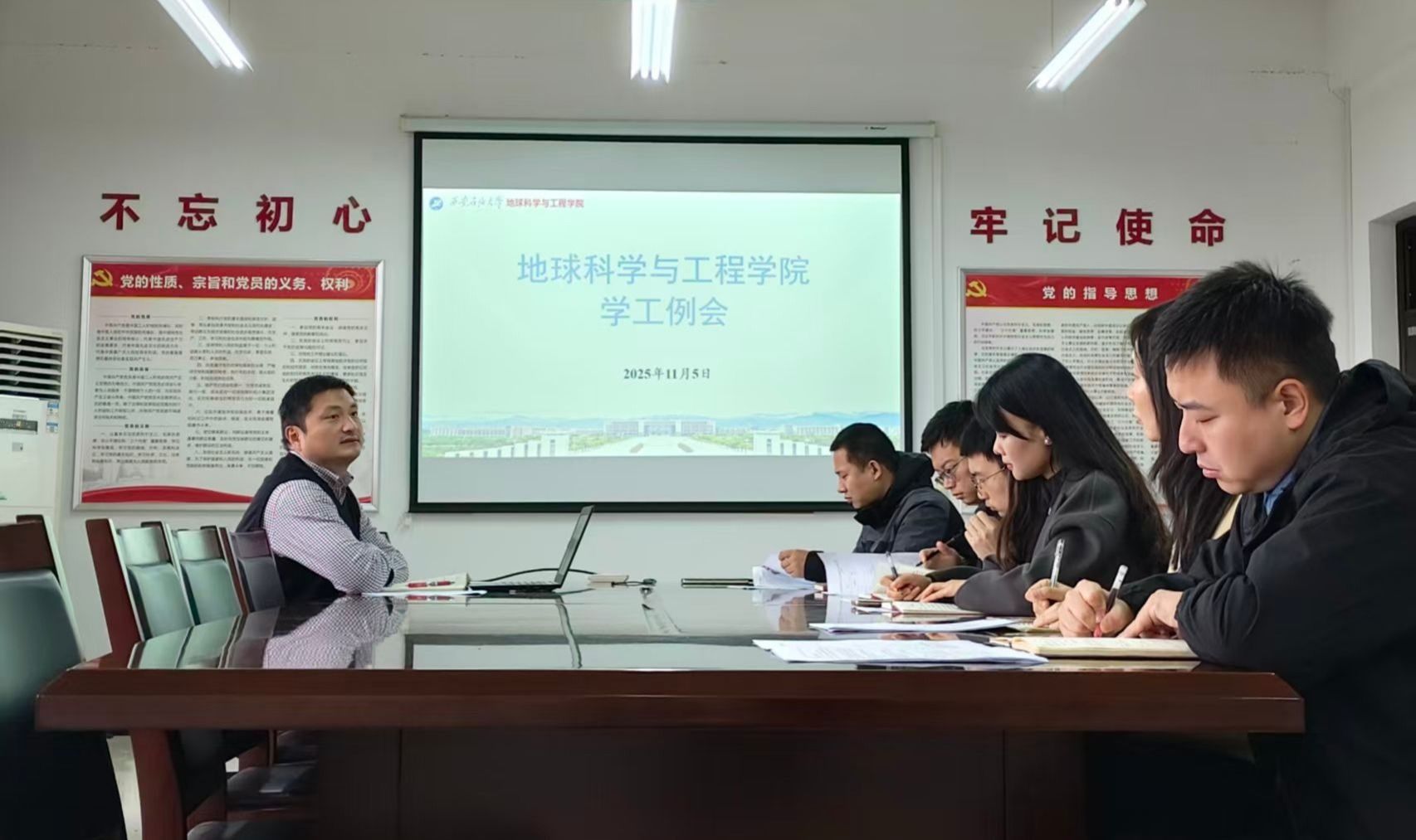 為全面落實(shí)上級(jí)和學(xué)校學(xué)生工作相關(guān)文件及會(huì)議精神,推動(dòng)學(xué)生工作落實(shí)落細(xì),11月5日,地球科學(xué)與工程學(xué)院在鄠邑校區(qū)開(kāi)物樓507會(huì)議室召開(kāi)學(xué)生工作例會(huì),學(xué)院黨委副書記董丙劍主持并講話,本科生輔導(dǎo)員、研究生輔導(dǎo)員參加會(huì)議。