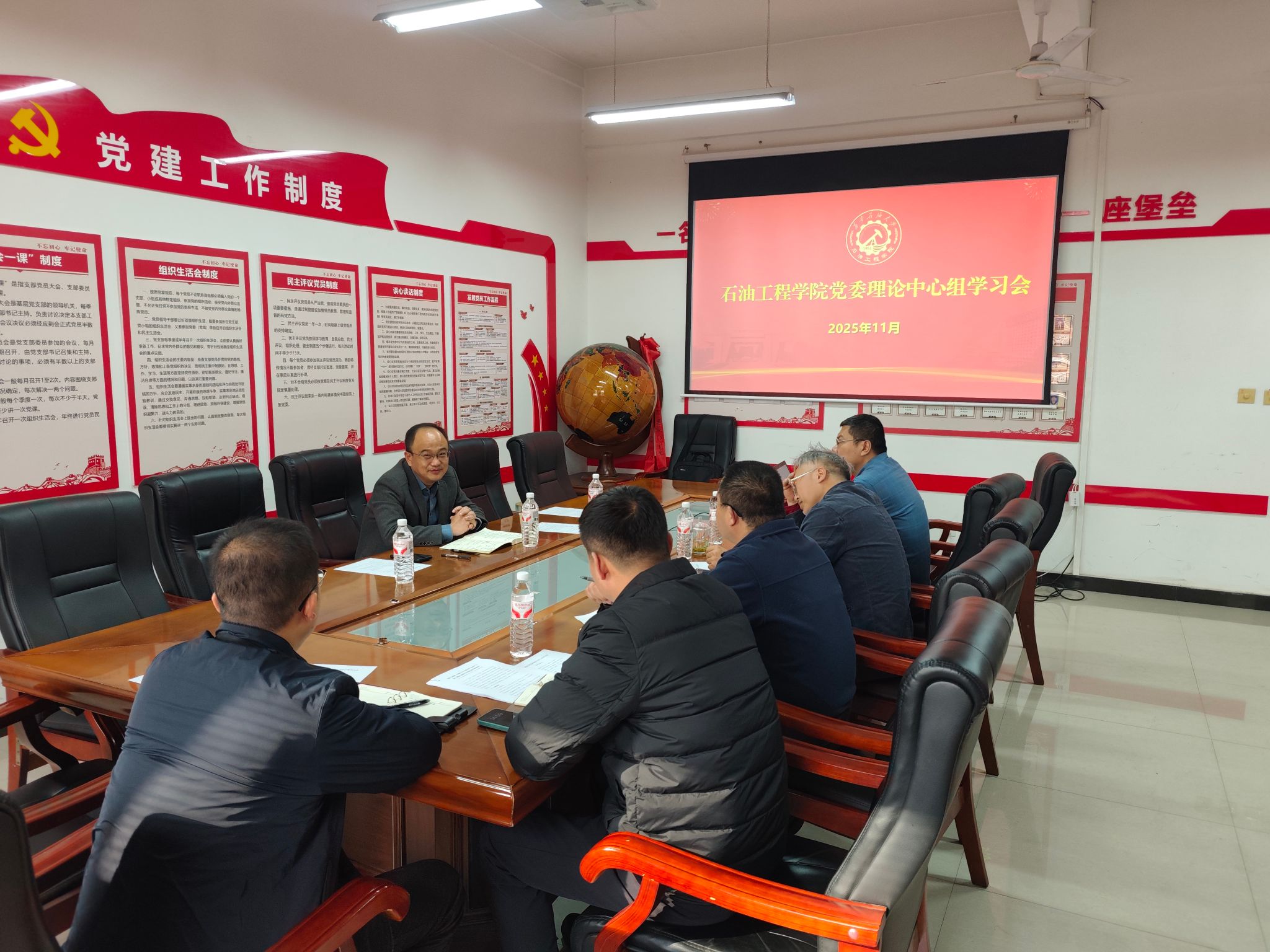 1111日下午,石油工程學(xué)院黨委理論學(xué)習(xí)中心組學(xué)習(xí)會在鄠邑校區(qū)開物561會議室進(jìn)行,副校長趙健參加并指導(dǎo)本次會議。石油工程學(xué)院黨政領(lǐng)導(dǎo)、教工黨支部書記、學(xué)院科級干部、工會主席參加會議,會議石油工程學(xué)院黨委書記司馬文龍主持。