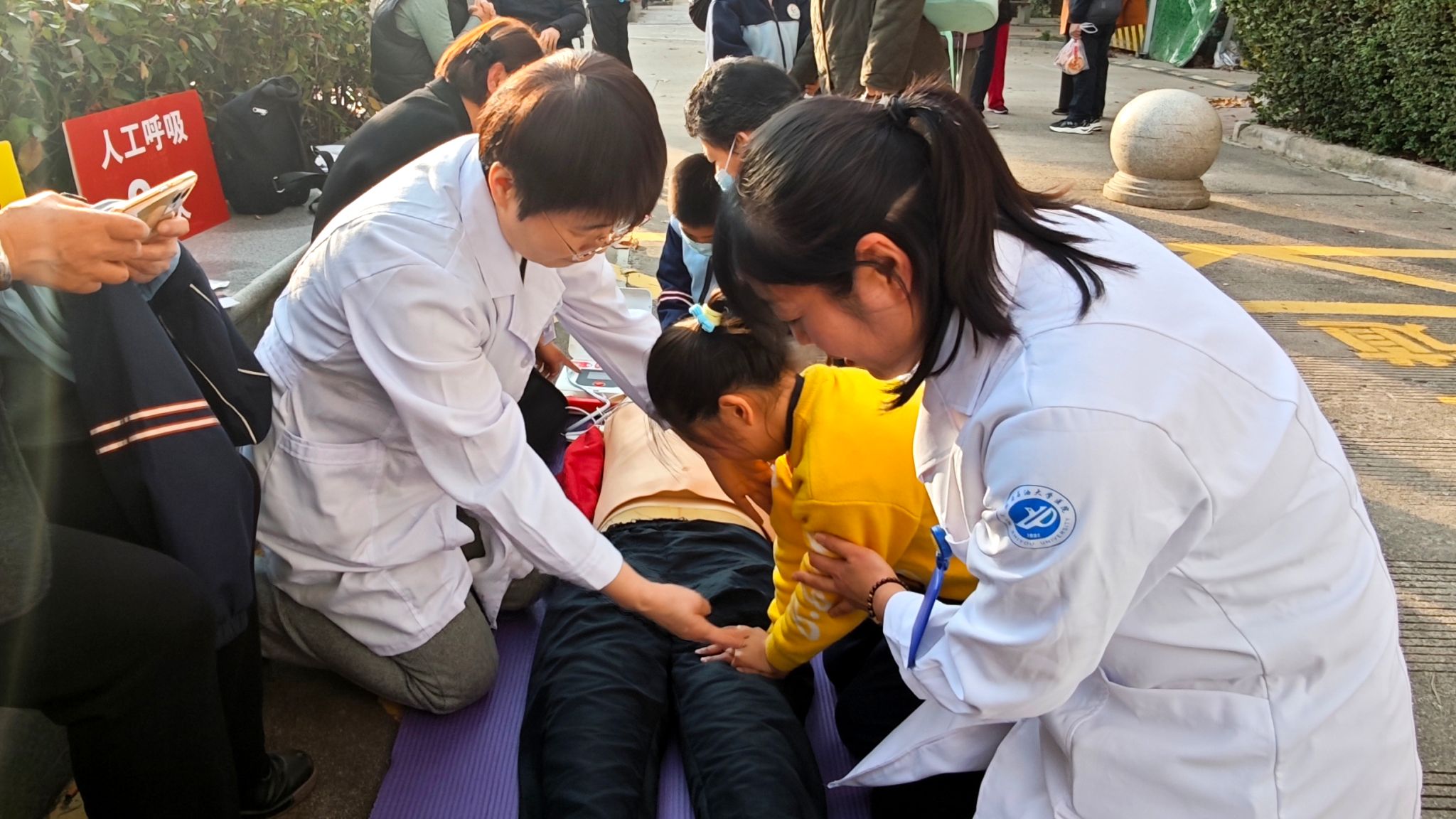 為提升校園應急救護能力,校醫(yī)院護理部急救師資團隊在兩場活動中同步開展應急救護實操培訓。借助模擬人教具,重點演示心肺復蘇(CPR)、自動體外除顫儀(AED)操作及海姆立克急救法,將專業(yè)操作拆解為清晰步驟,采用“理論講解+模擬實操”相結合的方式授課。