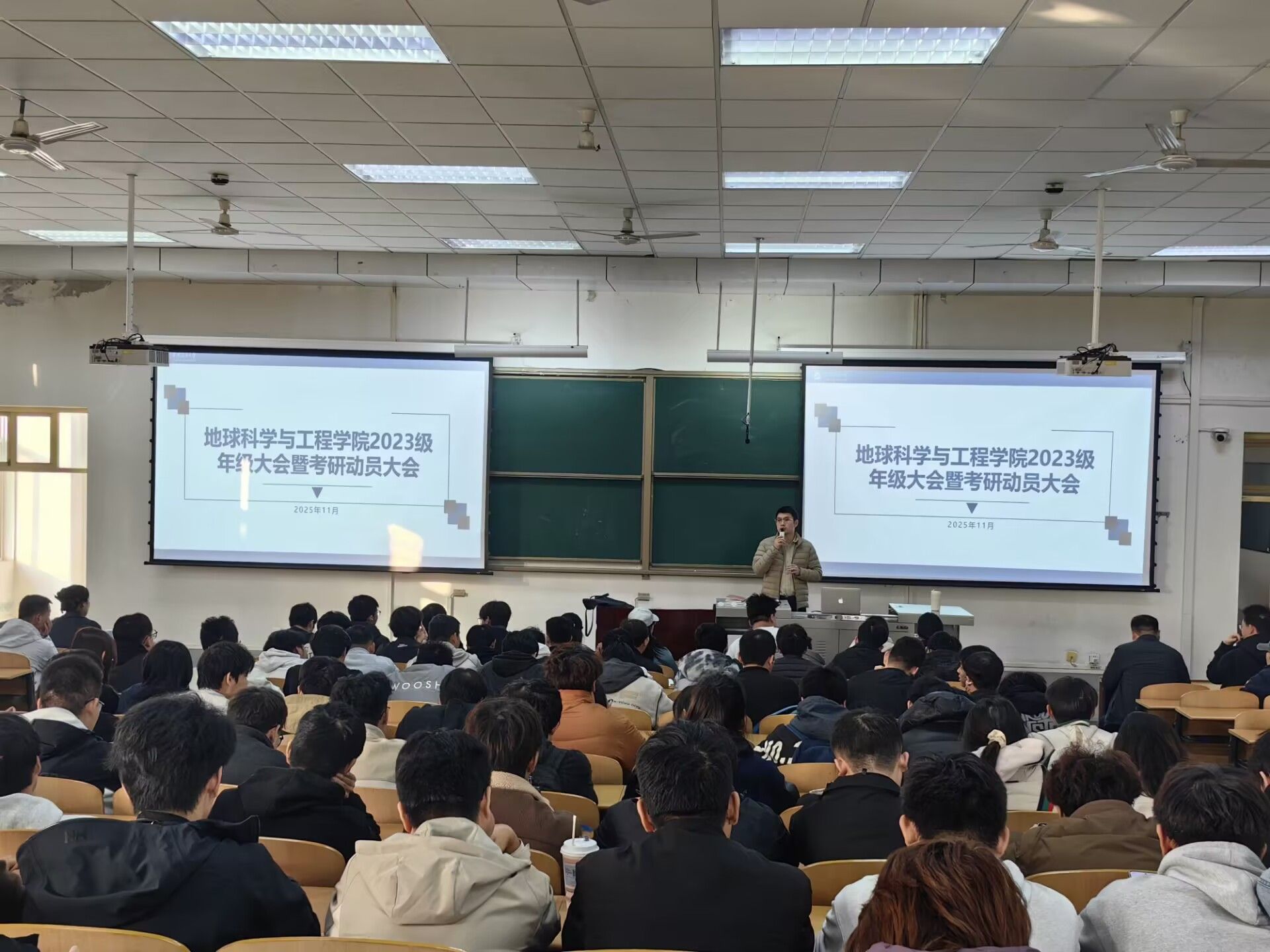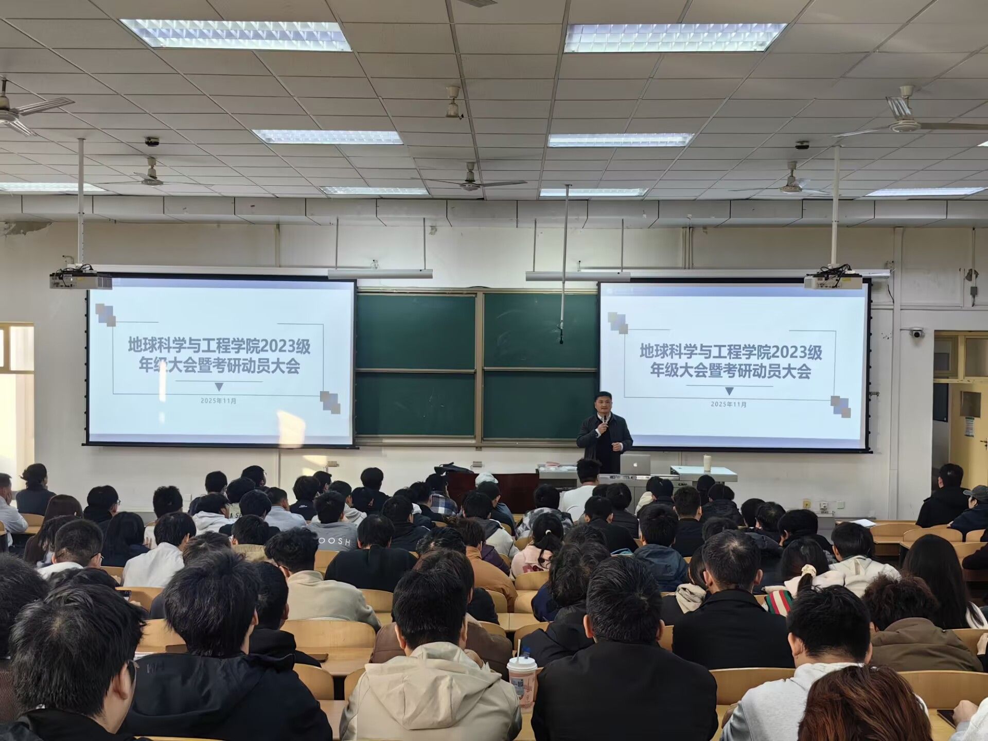 為進一步加強學生安全教育,強化學風建設,引導學生明確學業(yè)目標,地球科學與工程學院于11月13日在鄠邑校區(qū)博覽樓239教室舉行2023級年級大會暨考研動員大會。學院黨委副書記董丙劍出席大會,2023級全體學生參加。大會由2023級輔導員劉學斌主持。