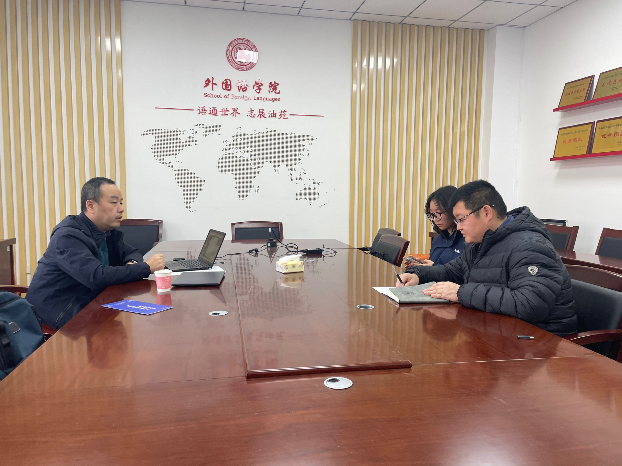 11月19日,合橙網(wǎng)絡(luò)科技有限公司負(fù)責(zé)人到訪外國(guó)語(yǔ)學(xué)院,雙方就學(xué)生就業(yè)工作進(jìn)行交流座談。外國(guó)語(yǔ)學(xué)院和經(jīng)濟(jì)管理學(xué)院畢業(yè)班輔導(dǎo)員參加會(huì)議。