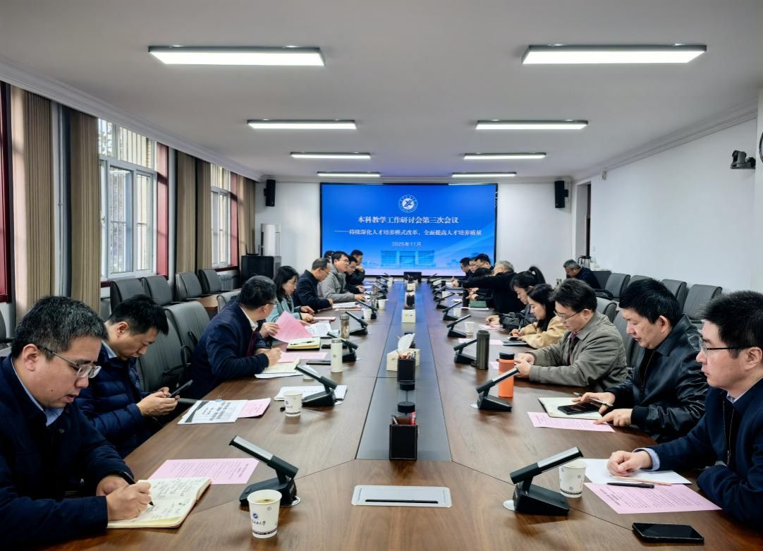 為深入貫徹學校第三次黨代會精神和教育科技人才一體化改革部署,落實“十五五”規(guī)劃編制相關要求,進一步聚焦本科人才培養(yǎng)核心任務,2025年11月21日上午,學校在鄠邑校區(qū)辦公樓第三會議室召開本科教學工作研討會第三次會議。會議圍繞“持續(xù)深化人才培養(yǎng)模式改革,全面提高人才培養(yǎng)質量”主題,凝聚改革共識、明確工作路徑,為學校實現(xiàn)“十五五”期間目標筑牢育人根基。副校長張君濤出席會議,教務處、實驗室管理處(實驗中心)、高教研究與評估督導中心相關負責人,各學院院長參加會議。會議由教務處處長張益主持。