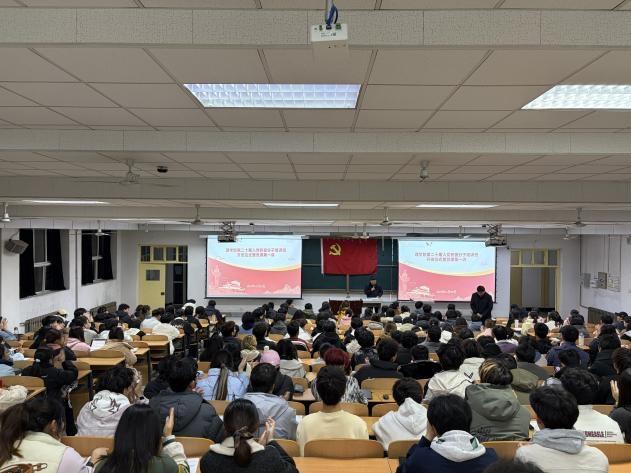 開班儀式后,學生工作部(處)部(處)長王亮作了開班第一講。他以《以中國式現(xiàn)代化推動中華民族偉大復興》為主題,以“新思想的核心要義與實踐要求”為切入點,緊密結(jié)合黨的二十大精神與學校專業(yè)特色,從“中國式現(xiàn)代化是實現(xiàn)中華民族偉大復興的光明大道”、“中國式現(xiàn)代化的中國特色”、“中國式現(xiàn)代化的本質(zhì)要求”、“推進中國式現(xiàn)代化的重大原則”四個維度展開講解。他以通俗化表達拆解理論要點,重點列舉我國航天工程、量子通信等領域的科研突破,生動闡釋了青年黨員在科技創(chuàng)新中的使命擔當,鼓勵同學們將數(shù)學、物理等專業(yè)所學與國家戰(zhàn)略需求相結(jié)合,在實驗室攻關、志愿服務、社會實踐等場景中踐行初心使命。
