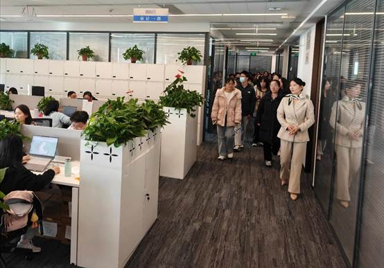在工作人員引導(dǎo)下,師生一行參觀了事務(wù)所的審計一部、工程造價部、技術(shù)支持部及員工共享空間等。通過實(shí)地走訪,同學(xué)們對事務(wù)所的組織架構(gòu)與業(yè)務(wù)流程有了更為直觀的認(rèn)識,切身感受到立信嚴(yán)謹(jǐn)專業(yè)的工作氛圍和以人為本的員工關(guān)懷,深刻體會到其團(tuán)隊協(xié)作精神與客戶服務(wù)理念。