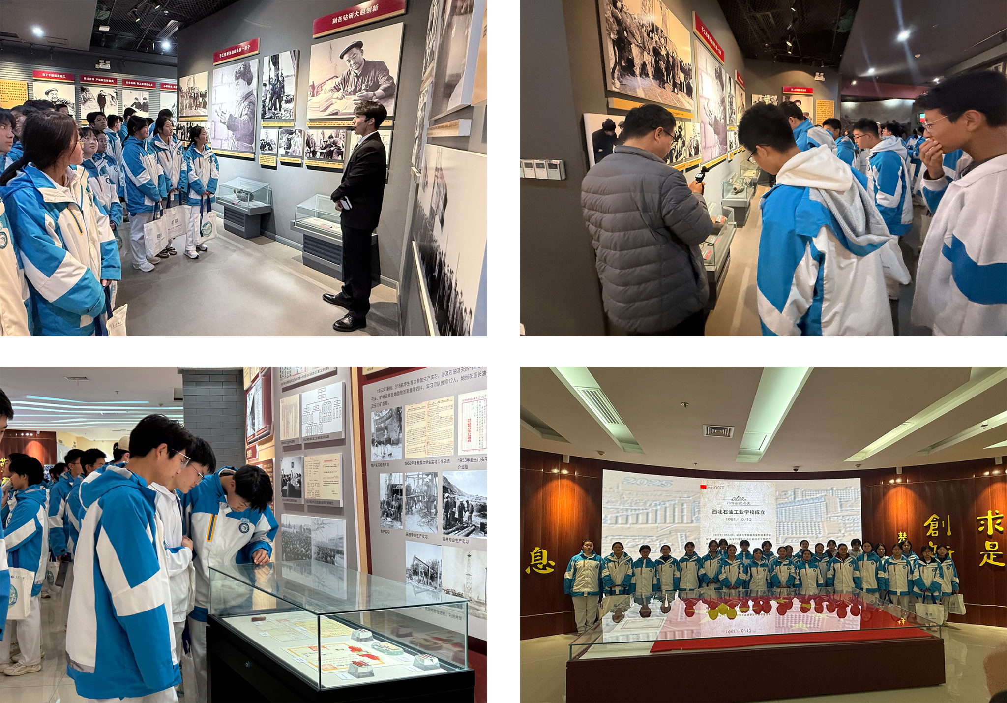 講座結(jié)束后,師生們在志愿者的引導(dǎo)下有序前往鐵人紀(jì)念館和校史館參觀。在參觀鐵人紀(jì)念館時,同學(xué)們被鐵人王進喜“寧可少活二十年也要拿下大油田”的英雄氣概所感染,為他身上所體現(xiàn)的“為國爭光、為民族爭氣”的愛國主義精神所震撼。通過珍貴的照片、陳列的實物以及講解員的講述,同學(xué)們深刻理解了鐵人的成長歷程和鐵人精神的內(nèi)涵。在參觀校史館時,同學(xué)們充分了解到我校創(chuàng)建的歷史使命和責(zé)任擔(dān)當(dāng),深刻體會到石油人的家國情懷和奉獻精神,真切感知到“愛國奉獻、艱苦奮斗、科學(xué)求實、開拓進取”的辦學(xué)精神,這種沉浸式的學(xué)習(xí)體驗,不僅加深了同學(xué)們對我校校園文化的理解,也進一步堅定了他們考入理想大學(xué)的信心與決心。