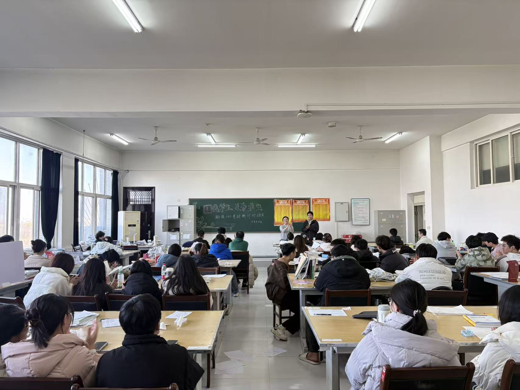 隨后,王瑩副書(shū)記作動(dòng)員講話,向同學(xué)們提出三點(diǎn)殷切囑托:一是以“堅(jiān)持”錨定方向,跑出沖刺“加速度”;王瑩鼓勵(lì)同學(xué)們:備考的疲憊與焦慮是常態(tài),但每一份熬夜整理的筆記、每一次反復(fù)推演的習(xí)題,都是通往成功的階梯。學(xué)院會(huì)始終做大家最堅(jiān)實(shí)的后盾,無(wú)論是復(fù)習(xí)資料的協(xié)調(diào)還是心理狀態(tài)的調(diào)適,老師們都會(huì)第一時(shí)間提供支持。二以“節(jié)律”守護(hù)狀態(tài),筑牢備考“健康線”;她特別提醒同學(xué)們:沖刺階段切勿陷入“疲勞戰(zhàn)”,要保持規(guī)律作息,保證每日7小時(shí)睡眠;飲食以清淡營(yíng)養(yǎng)為主,避免因身體不適影響復(fù)習(xí)節(jié)奏。三以“穩(wěn)心”應(yīng)對(duì)挑戰(zhàn),練就應(yīng)考“平常心”。王瑩建議同學(xué)們:淡化“結(jié)果焦慮”,專注當(dāng)下的知識(shí)鞏固;遇到情緒波動(dòng)時(shí),可通過(guò)與輔導(dǎo)員談心、與研友交流等方式疏解,以從容、自信的心態(tài)迎接考試。