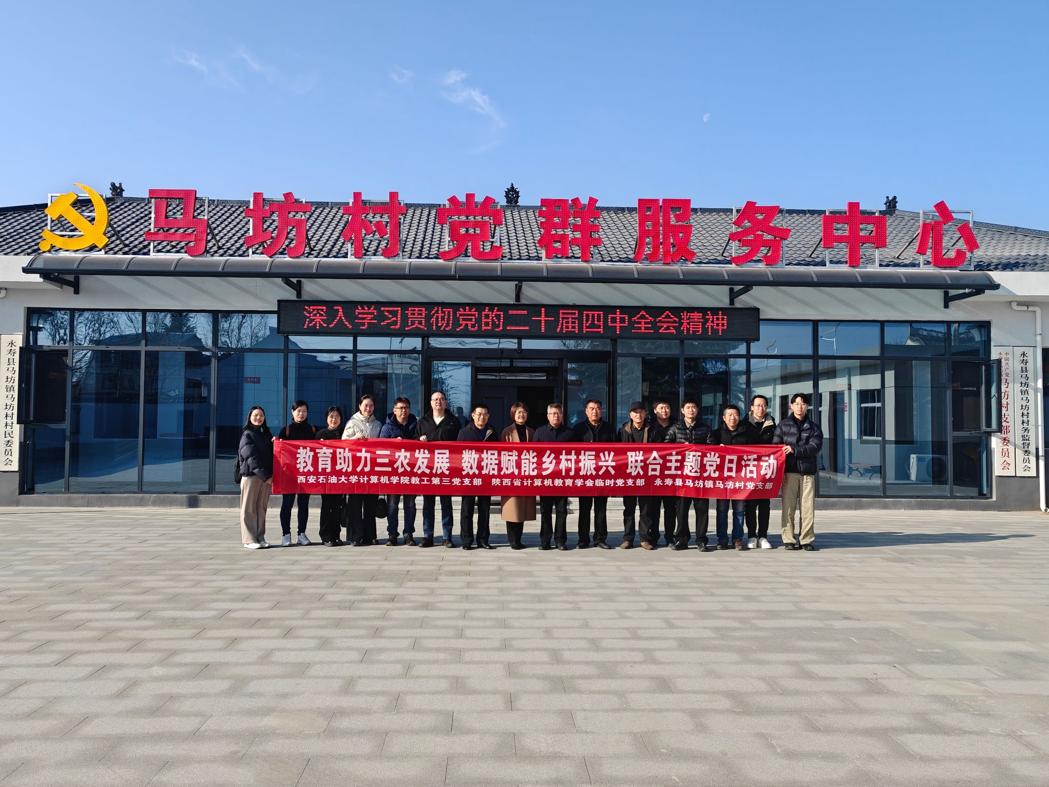 1210,副校長張驍勇參加并指導(dǎo)計算機學(xué)院教工第三黨支部赴永壽縣馬坊鎮(zhèn)馬坊村開展主題黨日活動,助力鄉(xiāng)村振興。本次活動以“教育助力三農(nóng)發(fā)展,數(shù)據(jù)賦能鄉(xiāng)村振興”為主題,聯(lián)合陜西省計算機教育學(xué)會臨時黨支部、永壽縣馬坊鎮(zhèn)馬坊村黨支部共同開展。永壽縣人民政府副縣長朱紹明,馬坊鎮(zhèn)黨委書記周偉艷,我校駐永壽縣永平鎮(zhèn)堅固村工作隊,計算機學(xué)院教授代表參加活動。