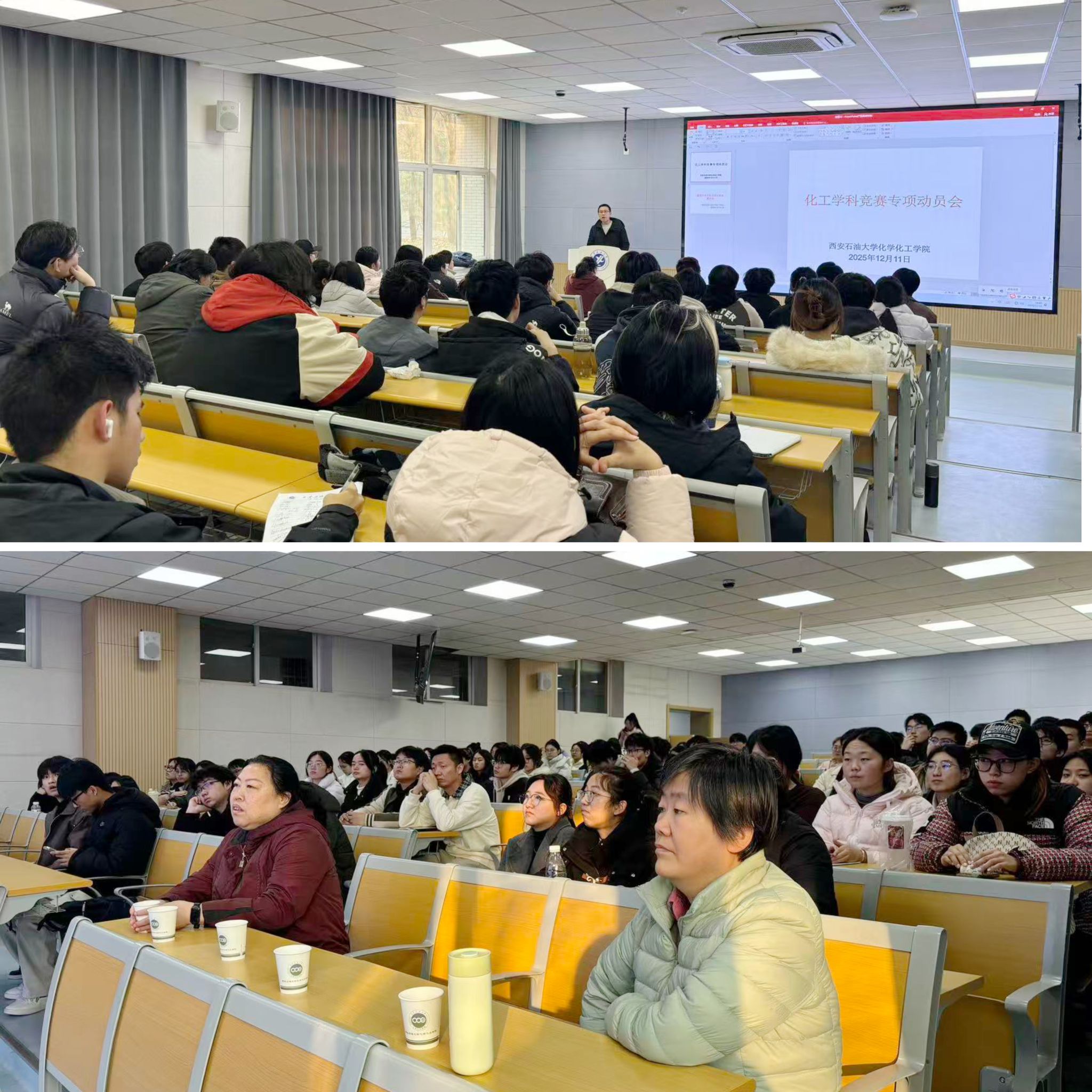 為深化人才培養(yǎng),提升學(xué)生學(xué)科競(jìng)賽水平,12月11日16:00,化學(xué)化工學(xué)院在鄠邑校區(qū)博覽樓A110教室組織召開(kāi)了化工學(xué)科競(jìng)賽專項(xiàng)動(dòng)員會(huì)。動(dòng)員會(huì)由化工系副主任黎小輝主持,邀請(qǐng)化工系學(xué)科競(jìng)賽指導(dǎo)教師劉菊榮、王進(jìn)擔(dān)任主講,2023級(jí)輔導(dǎo)員白婷及2023級(jí)、2024級(jí)、2025級(jí)部分本科生參加了此次活動(dòng)。