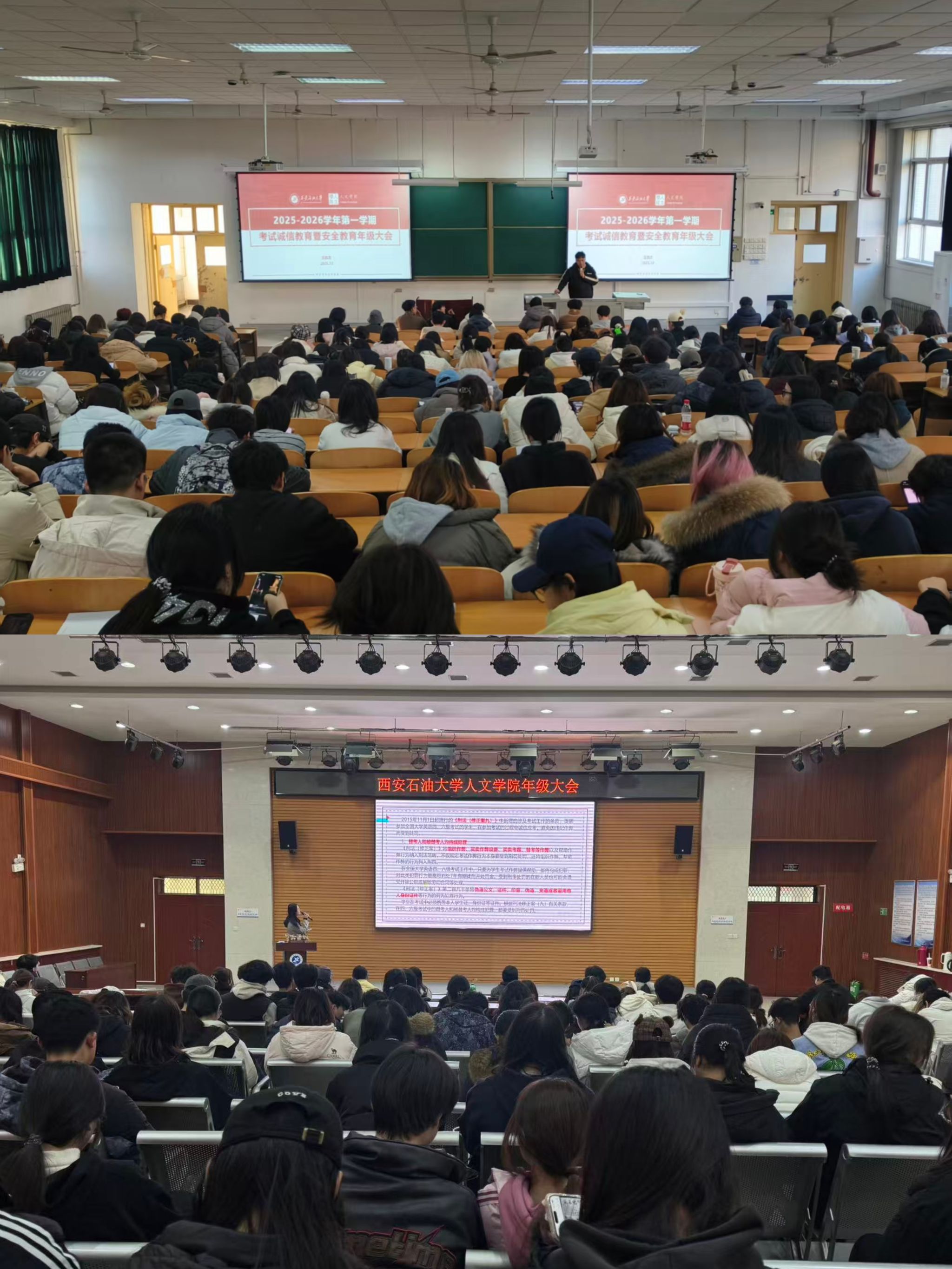 為持續(xù)強(qiáng)化學(xué)風(fēng)建設(shè),引導(dǎo)學(xué)生端正學(xué)習(xí)態(tài)度,誠信應(yīng)考,全面增強(qiáng)學(xué)生安全防范意識,營造平安、穩(wěn)定、和諧的校園環(huán)境。12月10日至11日,人文學(xué)院2023級、2024級分別在鄠邑校區(qū)博覽樓A234、崇文樓118組織召開了考風(fēng)考紀(jì)暨安全教育年級大會,2023級、2024級全體本科生參會,會議由各年級輔導(dǎo)員主持。
