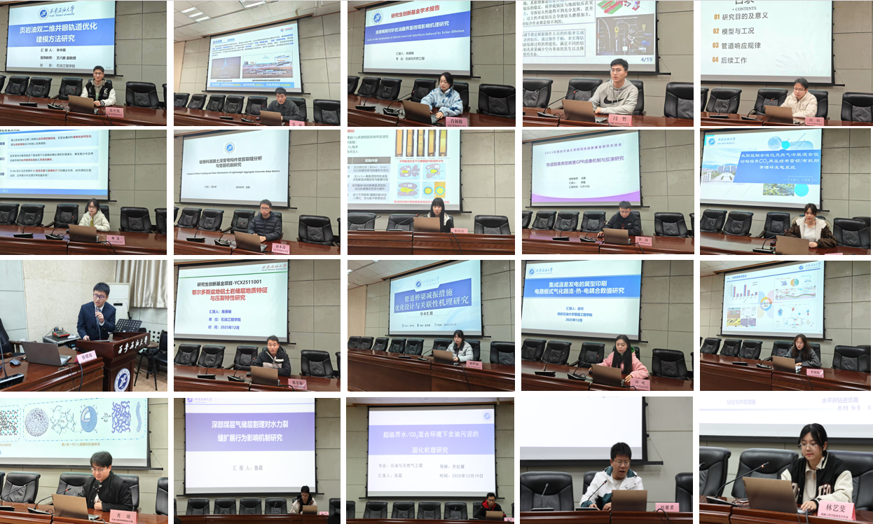 按照學(xué)校研究生工作部關(guān)于2025年研究生學(xué)風(fēng)建設(shè)暨學(xué)術(shù)文化活動(dòng)月的安排部署,12月19日,由研究生工作部主辦,石油工程學(xué)院、機(jī)械工程學(xué)院、管道工程學(xué)院三個(gè)學(xué)院組織承辦主題為“研途論道促提升 學(xué)科交融啟新篇”研究生學(xué)術(shù)報(bào)告會(huì),共100余名研究生代表參與報(bào)告會(huì),報(bào)告會(huì)由研究生輔導(dǎo)員宋興淼主持,各學(xué)院研究生代表圍繞學(xué)科前沿動(dòng)態(tài)、科研實(shí)踐成果、技術(shù)創(chuàng)新應(yīng)用等內(nèi)容展開深入交流,共同奏響了一曲學(xué)科交融、研思并進(jìn)的青春樂(lè)章。
