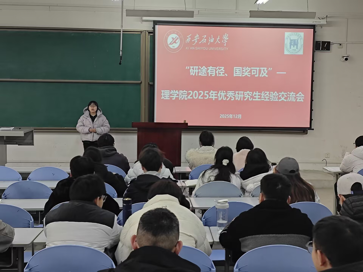 按照學(xué)校研究生工作部關(guān)于2025年研究生學(xué)風(fēng)建設(shè)暨學(xué)術(shù)文化活動月的安排部署,12月23日下午,理學(xué)院2025年優(yōu)秀研究生經(jīng)驗交流會在鄠邑校區(qū)博覽樓A124教室順利舉行。研2023級國家獎學(xué)金獲得者王滿銀、李微、烏嘉誠,研2025級全體同學(xué)參加,研究生輔導(dǎo)員馬小梅主持會議。