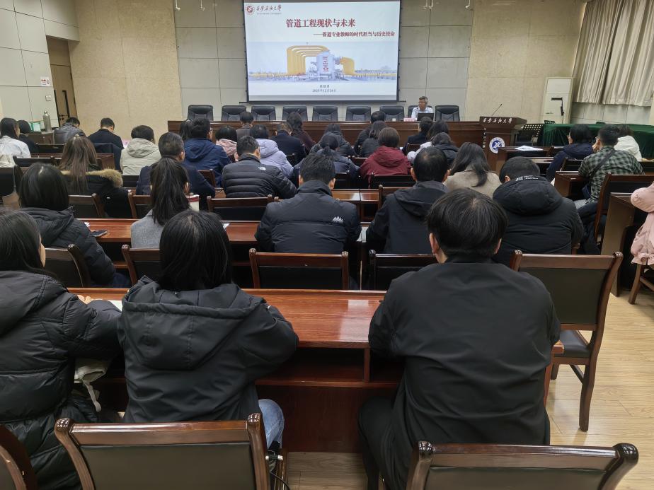 會上,張驍勇對全院師生從專業(yè)視角分別按照油氣儲運、安全工程、土木工程三個方向各提出三點希望:一是“鑄魂”,重塑課程思政新內(nèi)涵。對于油氣儲運專業(yè),要在講授“全國一張網(wǎng)”格局、跨國管道戰(zhàn)略意義時,深刻揭示其對于國家能源自主、地緣政治博弈的核心價值,培養(yǎng)學生作為 “國家能源系統(tǒng)調(diào)度師” 的格局與擔當。對于土木工程專業(yè),要在講授管道穿跨越工程、地質(zhì)災(zāi)害防治時,弘揚 “攻堅克難、打造不朽工程” 的工匠精神,將“隱蔽工程、百年品質(zhì)”的職業(yè)倫理深植學生心中。對于安全工程專業(yè),要深刻闡釋管道安全是 “總體國家安全觀”在能源領(lǐng)域的具體體現(xiàn),將安全職責從“避免生產(chǎn)事故”提升到 “捍衛(wèi)國家經(jīng)濟生命線和公共安全” 的崇高境界;二是“強技”,更新知識與能力體系。對于油氣儲運專業(yè),教學重點要從“工藝設(shè)計”向 “系統(tǒng)優(yōu)化” 和 “智能決策” 轉(zhuǎn)變,培養(yǎng)學生運用大數(shù)據(jù)和AI工具解決復雜管網(wǎng)問題的能力。對于土木工程專業(yè),要教導學生不僅關(guān)注“如何建得成”,更要思考“如何建得智能、如何感知自身狀態(tài)”。對于安全工程專業(yè),要教授基于大數(shù)據(jù)和人工智能的風險預測預警、基于數(shù)字孿生的應(yīng)急推演與決策、復雜系統(tǒng)韌性評估等現(xiàn)代安全工程方法;三是“力行”,創(chuàng)新教學與科研實踐。對于油氣儲運專業(yè),要開發(fā)基于數(shù)字孿生的管網(wǎng)模擬仿真教學平臺,讓學生在人機互動中學習智能調(diào)度,主動對接國家管網(wǎng)“七大方向”,在摻氫輸送、大型管網(wǎng)仿真軟件自主化等關(guān)鍵領(lǐng)域開展應(yīng)用型研究。對于土木工程專業(yè),繼續(xù)推廣BIM與 GIS在管道設(shè)計課程中的深度融合應(yīng)用,聚焦管道新型材料、高效智能建造技術(shù)等領(lǐng)域,推動科研成果向工程標準和教學案例轉(zhuǎn)化。對于安全工程專業(yè),要利用虛擬現(xiàn)實技術(shù)構(gòu)建管道泄漏、地質(zhì)災(zāi)害、網(wǎng)絡(luò)攻擊等沉浸式應(yīng)急演練場景。圍繞國家管網(wǎng)“本質(zhì)安全”方向,在管道裂紋智能識別與生長預測、多災(zāi)害耦合致災(zāi)機理、系統(tǒng)安全彈性恢復等前沿領(lǐng)域開展研究,為行業(yè)提供先進的理論和工具支持。