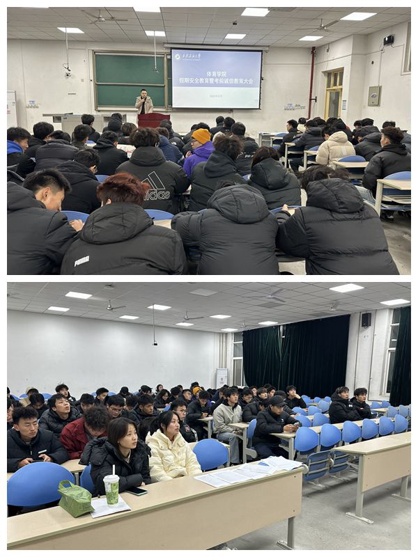 為進一步加強考風考紀教育,培養(yǎng)學生誠信品格,規(guī)范考場秩序,同時,在節(jié)假日來臨之際,提高學生的安全意識,筑牢校園安全防線,12月22日至24日,體育學院各年級組織召開了考風考紀暨離校安全教育大會,學院學工辦主任姜國平,輔導員張澤正以及全體本科生參會。