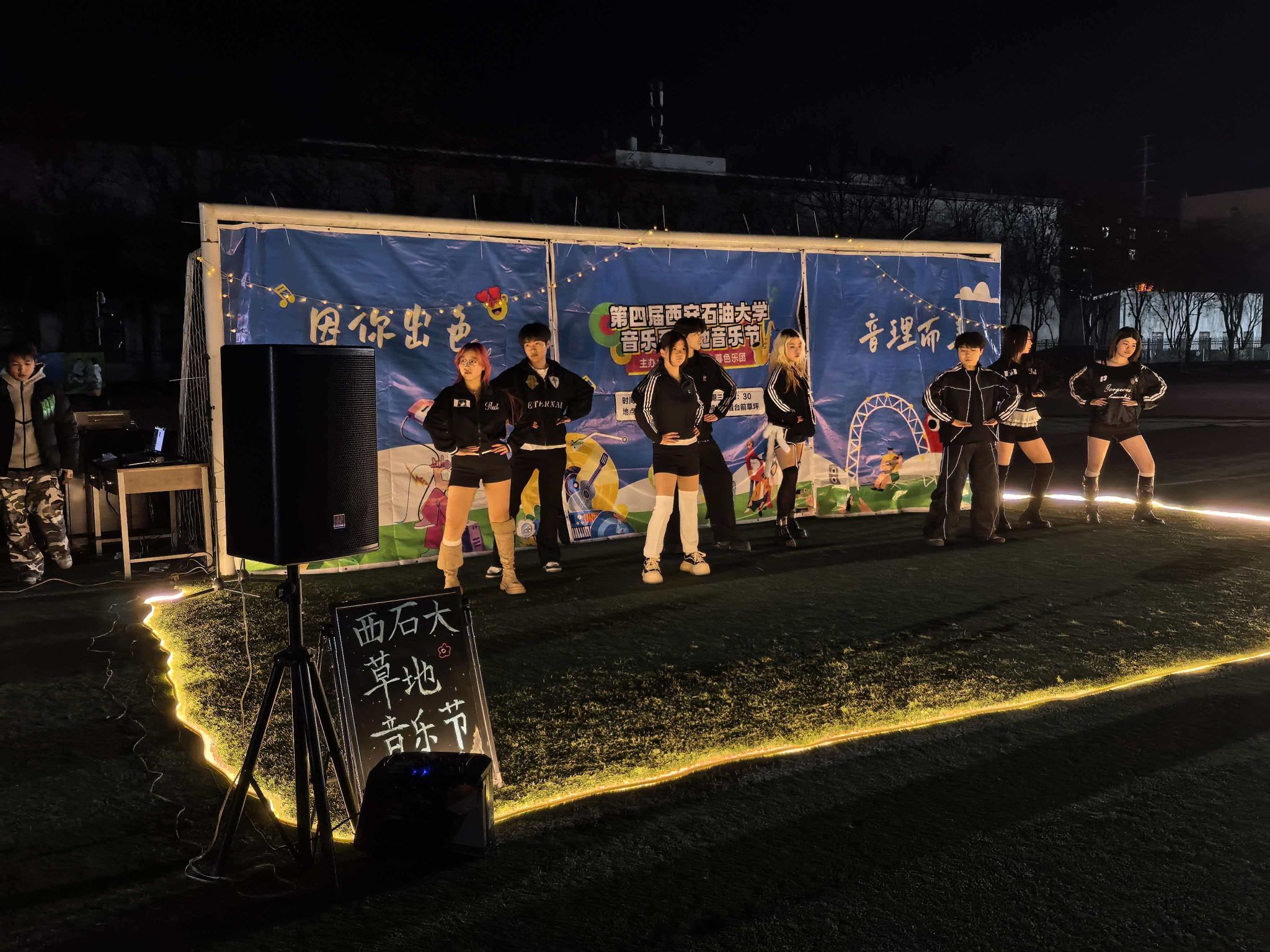 迎著晚風,踏著青草。星空為幕,草地為席。音浪嗨到頂,青春不設限!12月23日晚,音樂系、理學院舉辦的“因你出色,音理而美”草地音樂節(jié)在鄠邑校區(qū)東操場精彩上演。理學院團委書記龐波、輔導員林曄、音樂系新生輔導員張健和200余名學生共同觀看了此次音樂節(jié)。