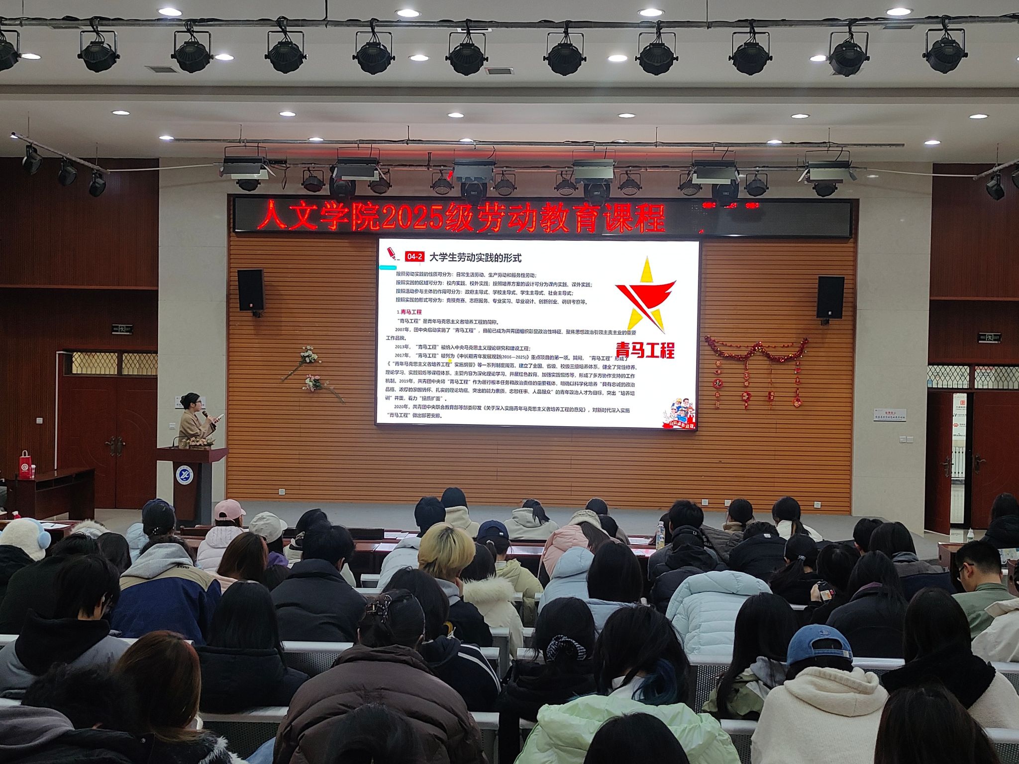 為推進學院學風建設(shè)及班級建設(shè),通過“勞動教育”全面育人、綜合育人、實踐育人,促進學生全面發(fā)展,12月29日,人文學院在崇文樓118多功能會議室舉辦勞動教育理論課暨假期安全教育年級大會。本次活動由2025級輔導員張馨元主講,全體2025級學生參加。