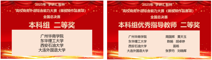 我校學(xué)子在2025年“學(xué)研匯智杯”高校商務(wù)外語綜合能力大賽(微視頻作品賽項(xiàng))全國總決賽中獲得佳績