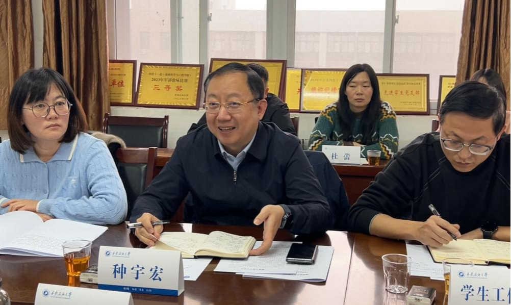 種宇宏認(rèn)真聽取了匯報(bào),并與在場(chǎng)人員進(jìn)行了充分交流。他對(duì)地球科學(xué)與工程學(xué)院在學(xué)生黨建、安全穩(wěn)定、學(xué)風(fēng)建設(shè)、學(xué)科競賽和就業(yè)考研等方面取得的扎實(shí)成效予以充分肯定,特別是對(duì)學(xué)院打造“孫健初科學(xué)家精神主題文化展區(qū)”育人陣地、構(gòu)建四級(jí)安全防控網(wǎng)絡(luò)、以學(xué)科競賽促學(xué)強(qiáng)技、精準(zhǔn)護(hù)航考研就業(yè)等特色做法表示贊賞。