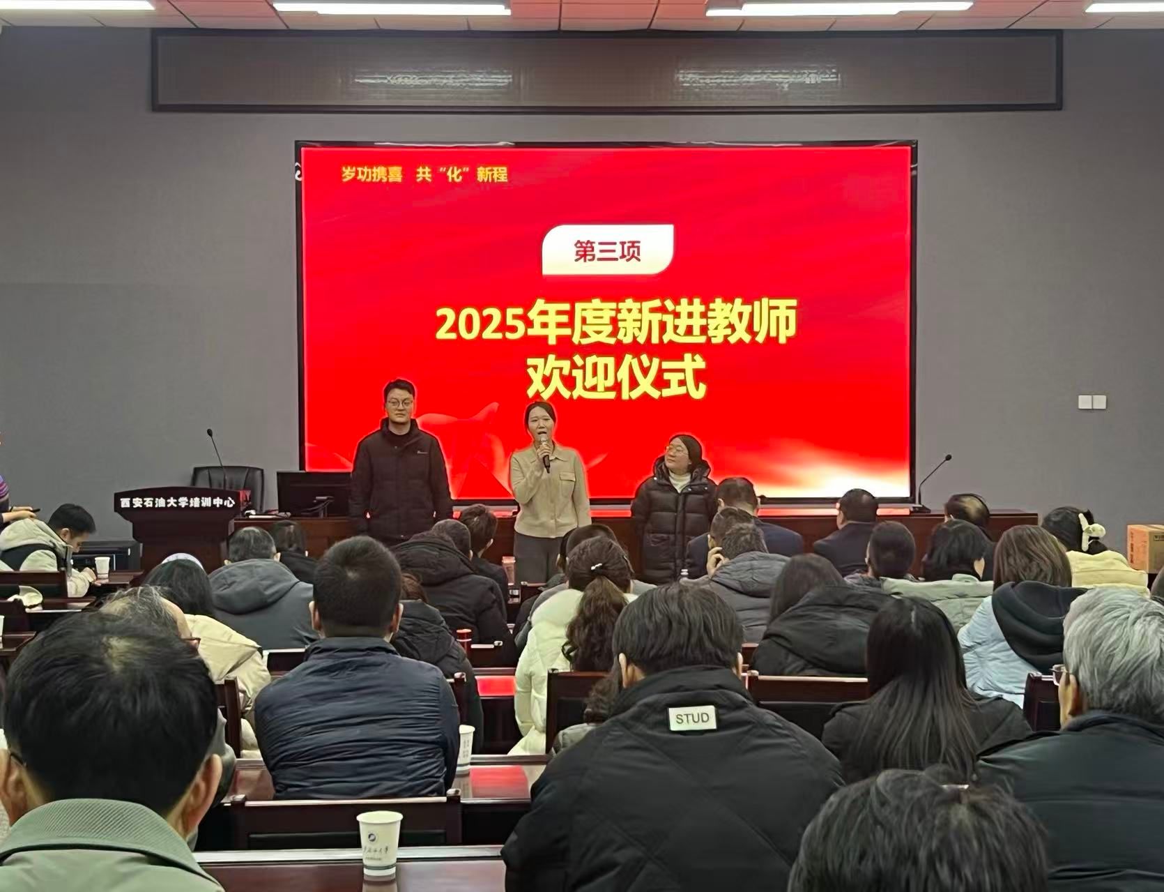 大會(huì)第四項(xiàng)為2025年新進(jìn)教師的歡迎儀式。新引進(jìn)的博士教師代表肖佳軒、于旭瑩、韓曉琨分別發(fā)言。他們表達(dá)了自己盡快適應(yīng)新角色、融入新集體的決心,并表示將自覺(jué)傳承學(xué)院嚴(yán)謹(jǐn)治學(xué)、潛心育人的優(yōu)良傳統(tǒng),握緊立德樹(shù)人、科學(xué)研究的“接力棒”,充分發(fā)揮專(zhuān)業(yè)特長(zhǎng),積極投身學(xué)院的內(nèi)涵建設(shè)與高質(zhì)量發(fā)展,為學(xué)校建設(shè)高水平教學(xué)研究型大學(xué)的奮斗目標(biāo)貢獻(xiàn)智慧與力量。