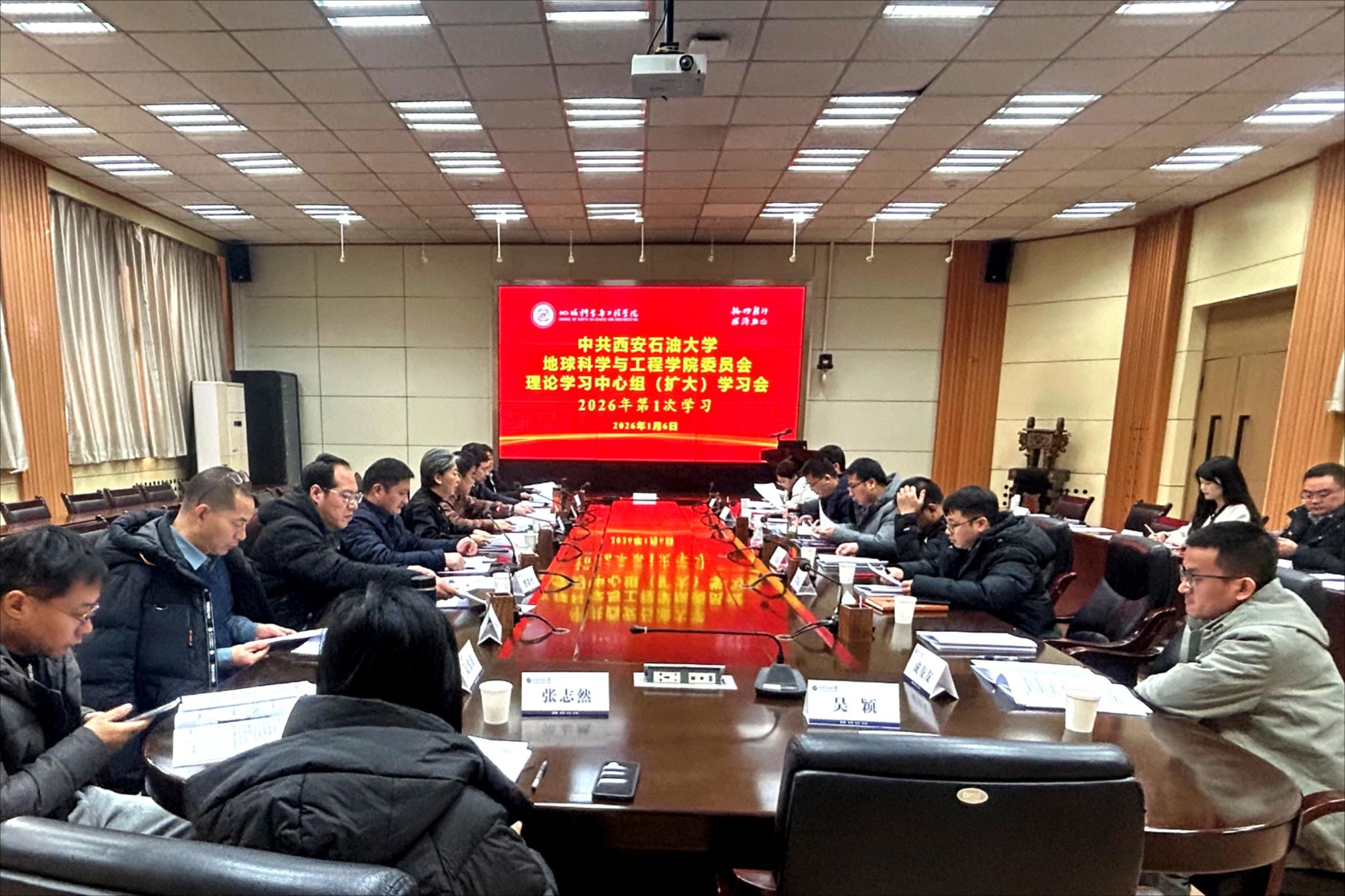 1月6日上午,地球科學(xué)與工程學(xué)院在雁塔校區(qū)第二會(huì)議室召開2025年度黨支部書記抓黨建述職評(píng)議考核工作會(huì)議,并隨后召開2026年第1次黨委理論學(xué)習(xí)中心組(擴(kuò)大)學(xué)習(xí)會(huì)。學(xué)院黨委委員、領(lǐng)導(dǎo)班子成員,院長(zhǎng)助理,各黨支部書記、系主任(副主任)、組織員以及省政協(xié)委員和學(xué)校“雙代會(huì)”代表等參加會(huì)議。學(xué)院黨委副書記董丙劍主持述職評(píng)議會(huì)。