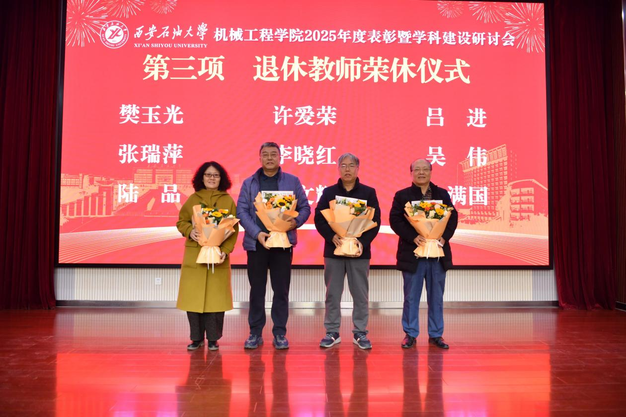 會議對2025年度在科學(xué)研究、教學(xué)改革、社會服務(wù)、學(xué)科競賽指導(dǎo)等方面表現(xiàn)突出的集體和個人進(jìn)行了表彰。趙健副校長為省級創(chuàng)新團(tuán)隊和省級人才稱號獲得者頒獎,校學(xué)術(shù)委員會副主任委員、國務(wù)院特殊津貼專家竇益華為獲批國家級項目負(fù)責(zé)人頒獎,教務(wù)處副處長陳國祥為國家一流課程教學(xué)團(tuán)隊、陜西省研究生教育綜合改革研究與實踐項目團(tuán)隊頒獎,科技處副處長屈樂為獲得中國商業(yè)聯(lián)合會科技進(jìn)步一等獎、中國發(fā)明協(xié)會發(fā)明創(chuàng)業(yè)成果二等獎等科研成果獲獎團(tuán)隊頒獎,人事處副處長張云姿為年度機(jī)械工程學(xué)院考核優(yōu)秀個人頒獎。
