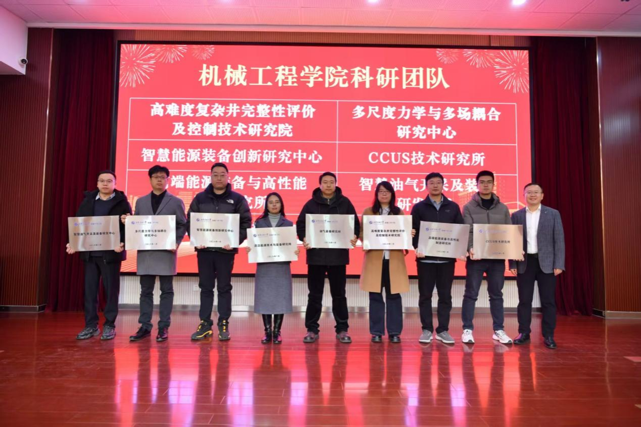 為推動學(xué)科交叉與有組織科研,學(xué)院成立了高難度復(fù)雜井完整性評價及控制技術(shù)研究院、多尺度力學(xué)與多場耦合研究中心、智慧能源裝備創(chuàng)新研究中心、智慧油氣開采及裝備研發(fā)中心、CCUS技術(shù)研究所、高端能源裝備與高性能制造研究所、清潔能源技術(shù)與裝備研究所、油氣裝備研究所,學(xué)院院長劉少胡為8個研究機(jī)構(gòu)授牌。