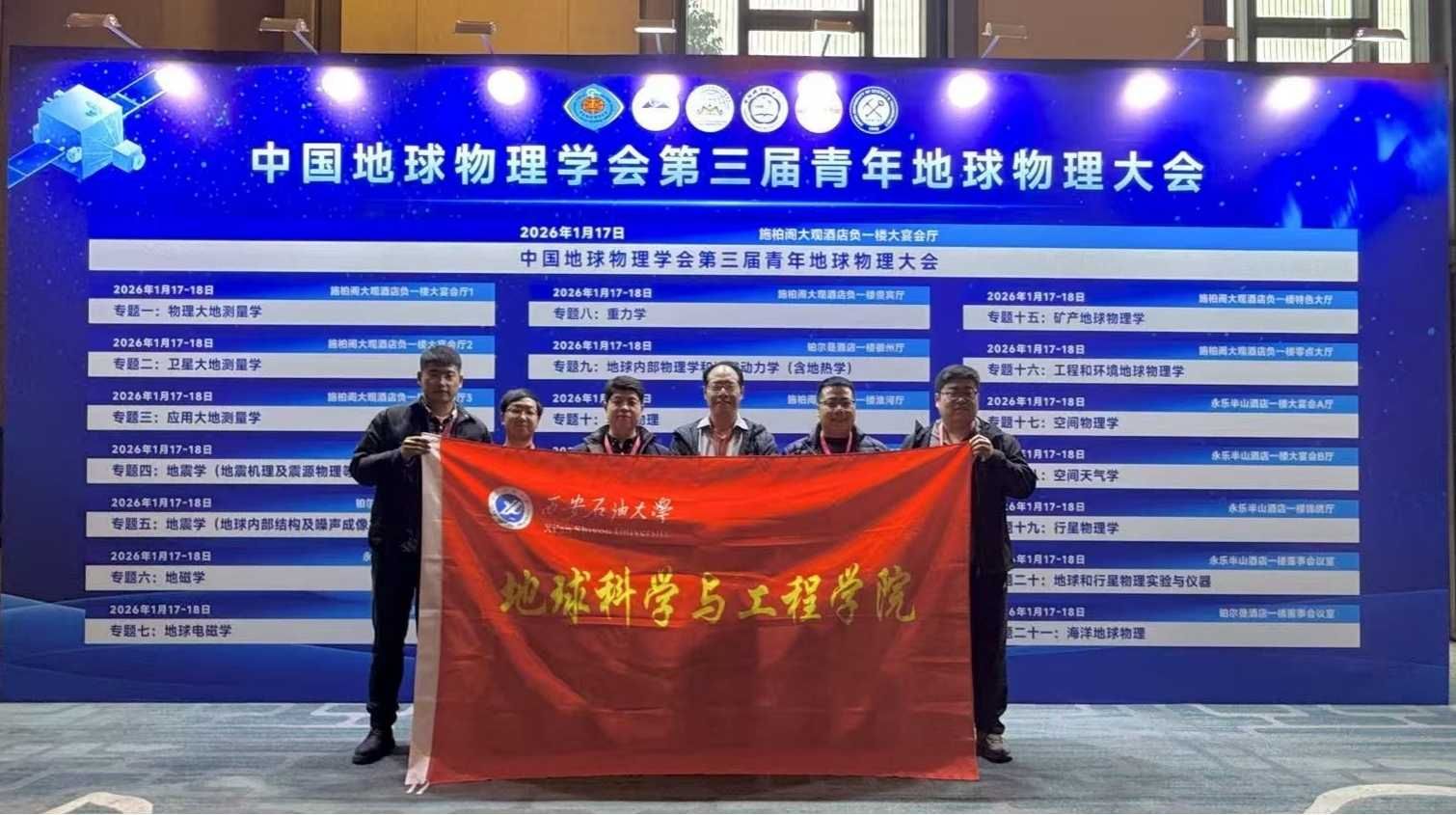 2026年1月16日至19日,第三屆青年地球物理大會在安徽合肥隆重舉行,本屆大會吸引了來自全球60多家單位的800多名頂尖專家和青年學(xué)者參加。我校地球科學(xué)與工程學(xué)副院長院曹靜杰教授帶領(lǐng)7位青年教師集體參加了本次大會。曹靜杰教授作為專題召集人組織了第十六專題,應(yīng)用地球物理系青年教師馮旭亮、李萌、楊飛龍、李欣欣、魯愷、楊文強(qiáng),分別在地球電磁學(xué)、重力學(xué)、地磁學(xué)、工程和環(huán)境地球物理學(xué)、油氣測井與儲層評價(jià)、地震波場成像方法及技術(shù)、儲層識別與參數(shù)反演等專題作學(xué)術(shù)報(bào)告7場,展現(xiàn)了我校地球物理領(lǐng)域青年教師在相關(guān)領(lǐng)域的科研進(jìn)展與風(fēng)采。