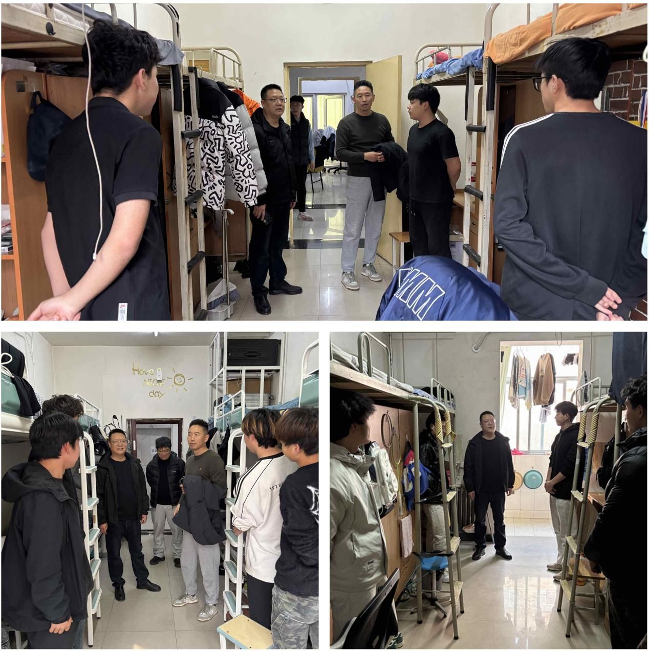 深入學生宿舍,排查整改安全隱患。學生宿舍是學生日常生活的重要場所,也是安全管理的重點區(qū)域。為切實消除各類安全隱患,3月4日,體育學院黨政班子帶隊深入每一間學生宿舍,開展全面細致的安全檢查。檢查內(nèi)容涵蓋用電安全、消防設(shè)施配備、門窗安全、衛(wèi)生狀況等多個方面?,F(xiàn)場指導(dǎo)學生整改,并對存在安全隱患的宿舍建立隱患臺賬,確保問題及時發(fā)現(xiàn)、及時整改、不留死角。檢查期間,同時向?qū)W生講解防火、防盜、防詐騙等安全知識,提醒學生增強防范意識,注意人身和財產(chǎn)安全。