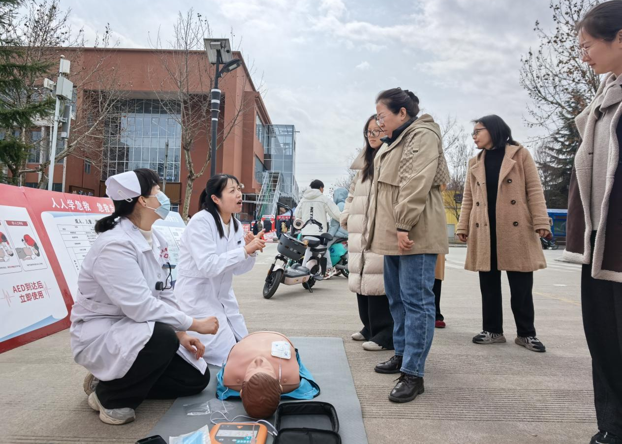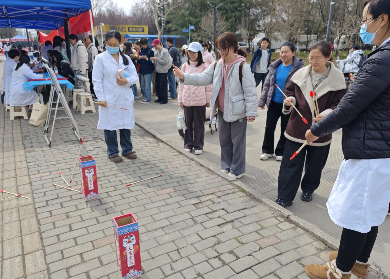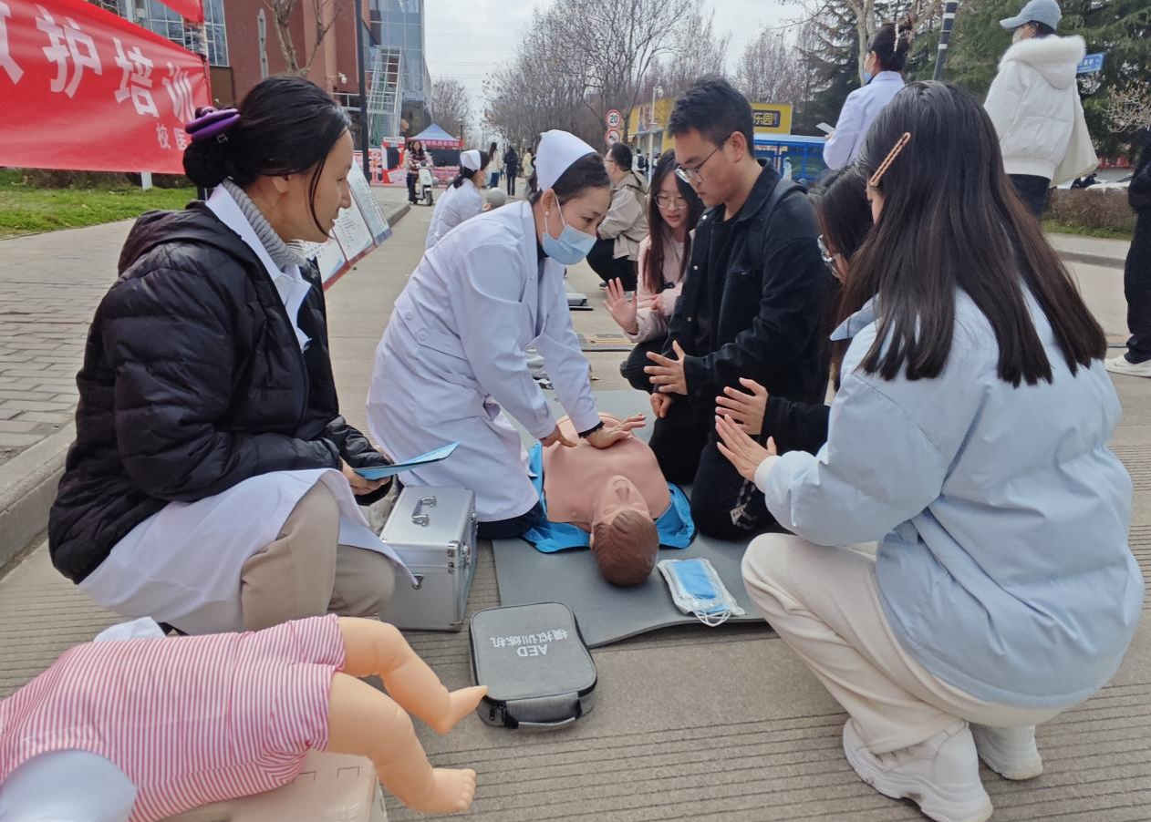 3月6日中午,鄠邑校區(qū)以“關(guān)愛女性健康,從呵護(hù)身心開始”為主題的專場健康咨詢在東區(qū)食堂對面舉行。通用環(huán)球中鐵西安醫(yī)院王娜娜、任朝偉、員海娟,及校醫(yī)院王凱、李佳晨、齊琳婧等專家組成健康咨詢團(tuán)隊(duì),提供女性常見病咨詢、中醫(yī)體質(zhì)辨識、內(nèi)分泌調(diào)理、腫瘤預(yù)防等服務(wù)?,F(xiàn)場開設(shè)血壓、血糖免費(fèi)檢測點(diǎn),校醫(yī)院急救教育團(tuán)隊(duì)聚焦校園場景普及心肺復(fù)蘇與海姆立克急救法,踐行“人人學(xué)急救,急救為人人”理念?;顒釉鲈O(shè)趣味小游戲與健康知識問答環(huán)節(jié),為參與者發(fā)放精美小禮品,現(xiàn)場氛圍溫馨熱烈、秩序井然。