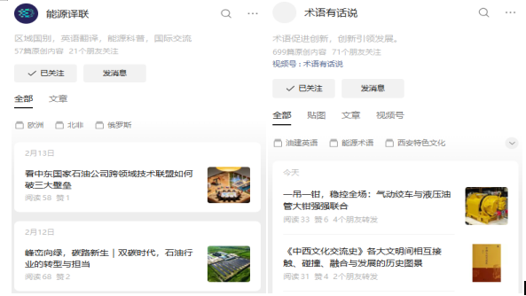 “術(shù)語有話說”“XSYU文思驛站”“能源譯聯(lián)”“華彩英繹”4個(gè)特色公眾號平臺